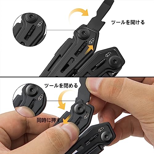 【安心な安全ロック】ロック機能が搭載して、ツールを180°まで展開したら自動ロックかけるので、使用中折り畳まれないように、安全性を高めます。