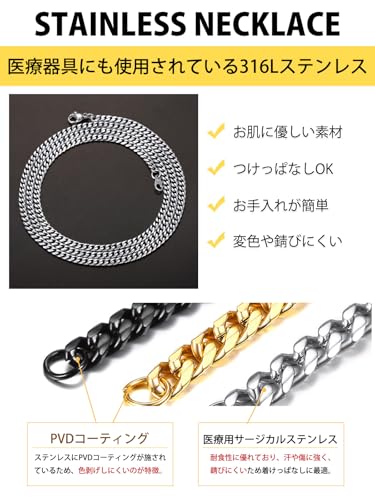 [ChainsHouse] ネックレス メンズ チェーンのみ サージカルステンレス 喜平 シルバー 金属アレルギー対応 51cm 3mm アクセサリー