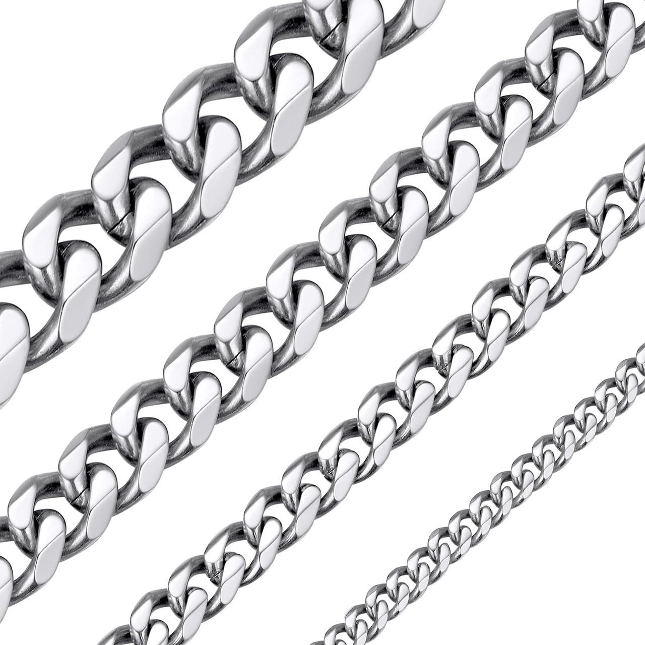 【色も!太さも!長さも選べる!】3mm、6mm、9mm、12mmの4太さ、シルバー、ゴールド、ブラックの3色、46cm、51cm、56cm、61cm、66cm、71cm、76cmの7長さ、全84種類を揃えました!