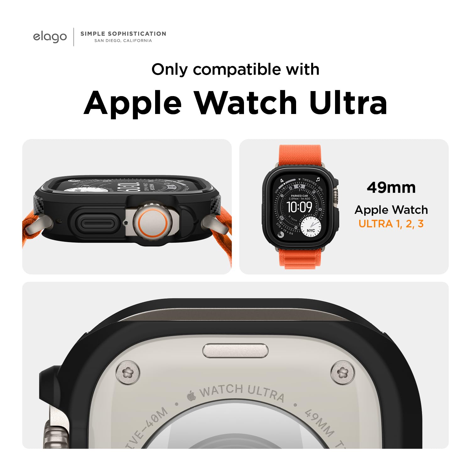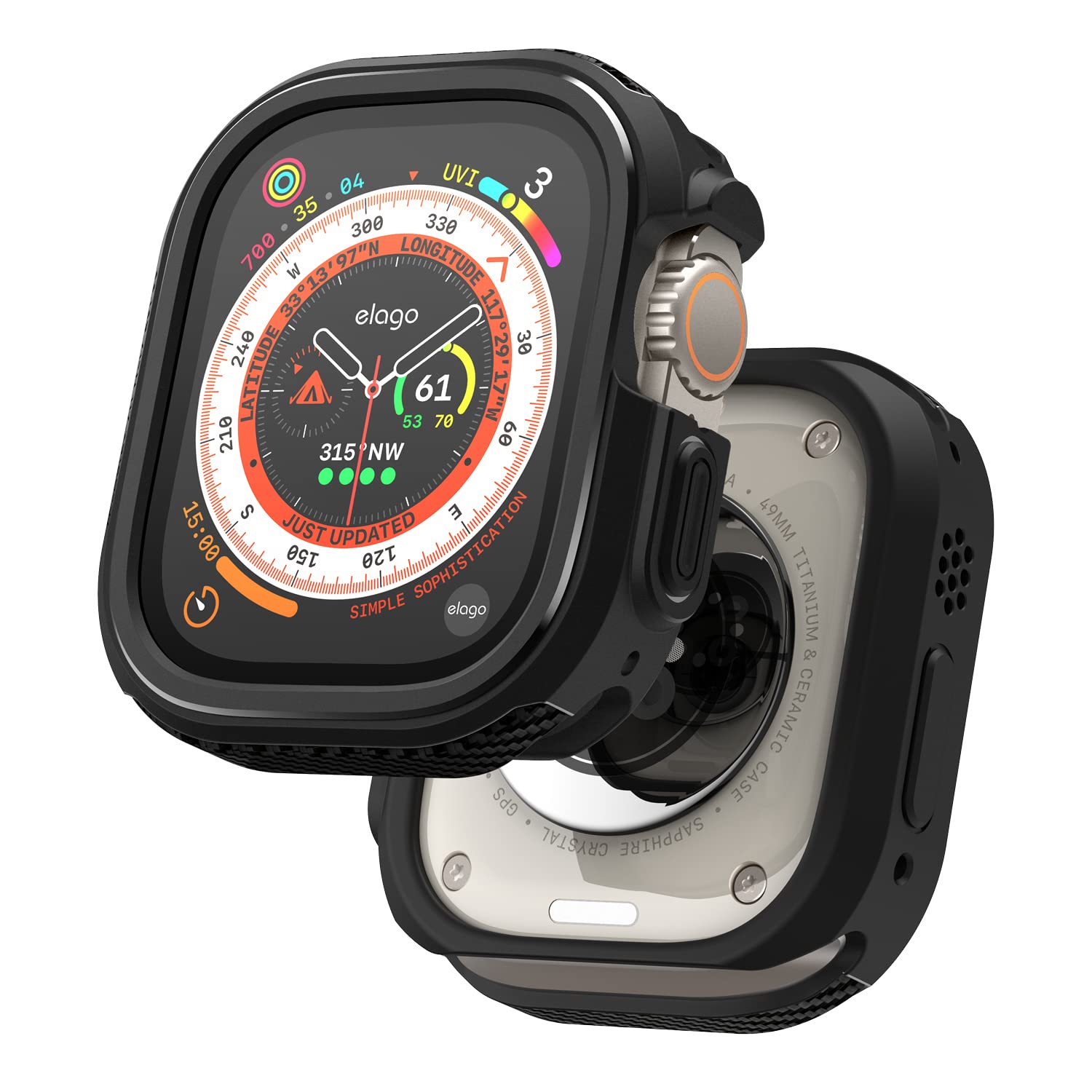 【elago】 Apple Watch Ultra 3 2 1 49 mm 対応 ケース 耐衝撃 軽い シンプル 保護ケース Appleウォッチ ソフト TPU カバー アップルウォッチウルトラケース [ AppleWatchUltra アップルウォッチウルトラ 49mm 対応 ] ARMOR CASE ブラック