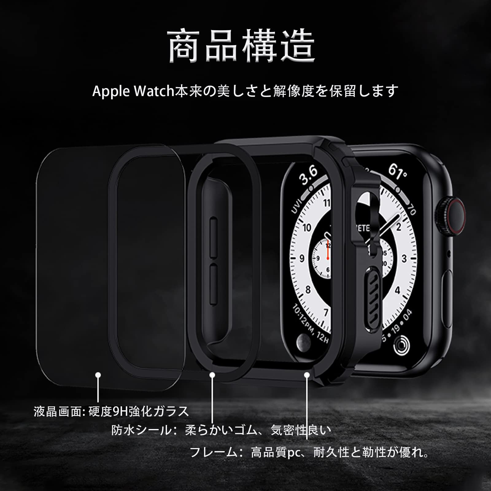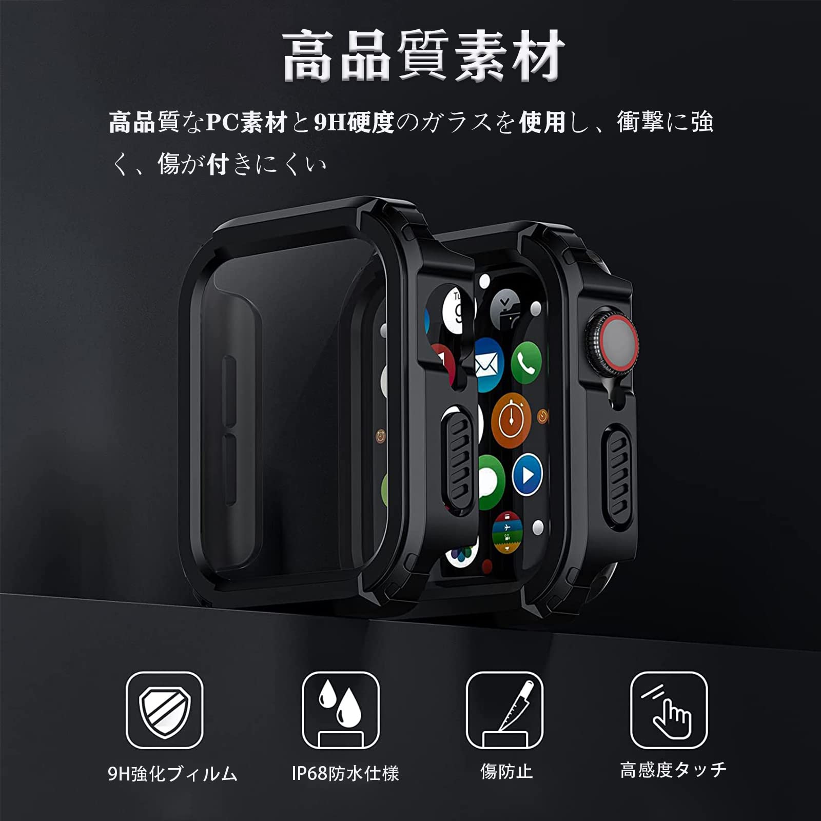 【高品質素材】 Apple Watch ケースの画面部分が硬度9Hで強靭な日本旭硝子素材を採用して耐傷、耐衝撃のは強い。スマートウォッチ本来の美しさをそのままに保つことが可能です。