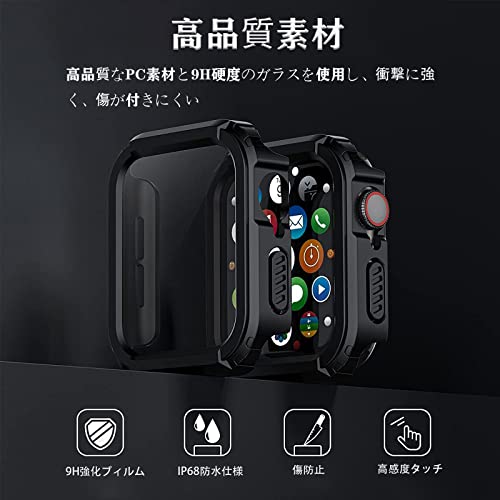 AMAPC for Apple Watch ケース 45mm 41mm 防水ケース IP68完全防水 バンド 水泳・スポーツ専用 ガラスフィルム 一体型 apple watch 用 カバー アップルウォッチ ケース 全面保護 耐久性 傷防止 Apple Watch 9/8/7 45mm対応 ブラック