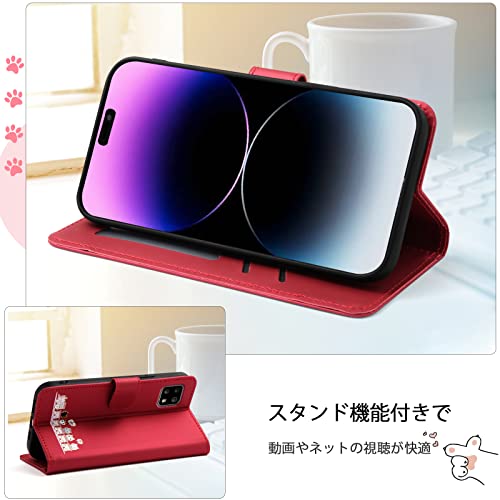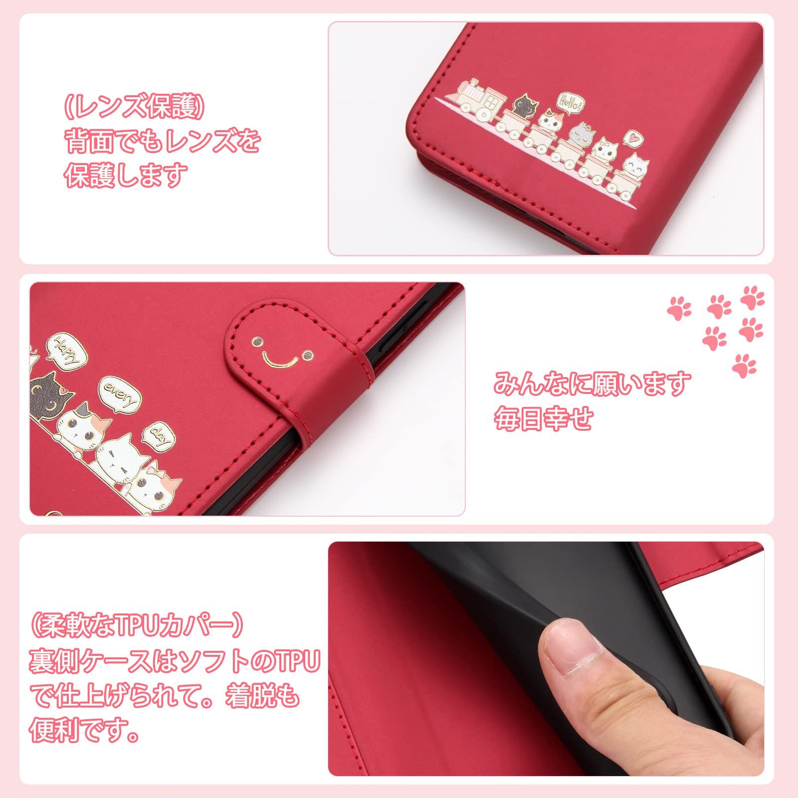 Qribo Aquos sense4 ケース 手帳型 SH-41A ケース Aquos Sense5G ケース 手帳型 SH-53A SH-M17 SHG03 ケース Aquos sense4 Lite ケース シンプルなのに可愛いデザイン エンボス加工猫柄 うれしい気持ち 5.8インチ対応 アクオス センス4 ケース Aquos sense4 Basic ケース A003SH スマホケース 薄型 防水 の耐久性 滑り防止 美しい 贈り物 友達 - 赤