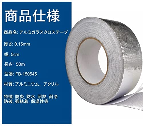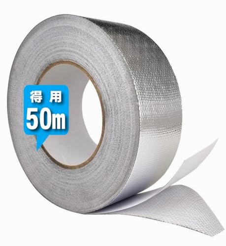 アルミガラスクロステープ たっぷり50m 幅5㎝ 長さ50m 厚さ0.15㎜ アルミガラス テープ 防破 アルミ箔テープ 耐熱 耐冷 防炎 遮熱 耐引裂性 強粘着 保温 防水 補修 補強 固定