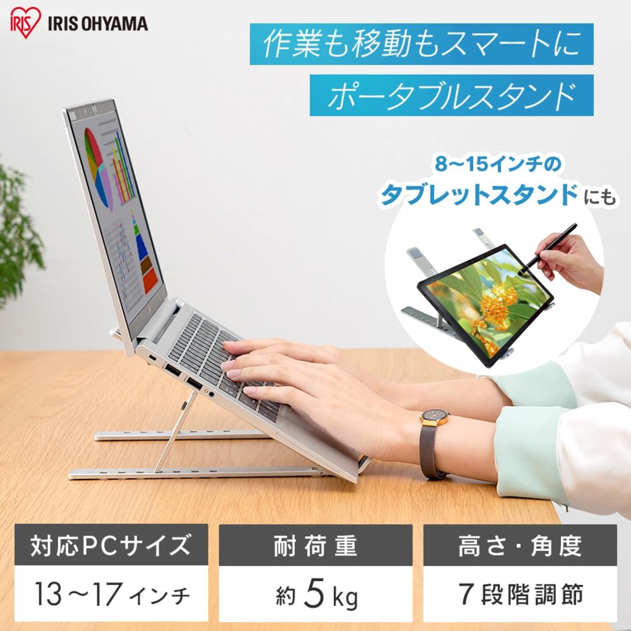 アイリスオーヤマ(IRIS OHYAMA) ノートパソコンスタンド ノートPC スタンド タブレットスタンド 教卓 スタンド高さ/角度調整可能 姿勢改善 折り畳み式 超軽量ポータブルタイプ シルバー NPS-P