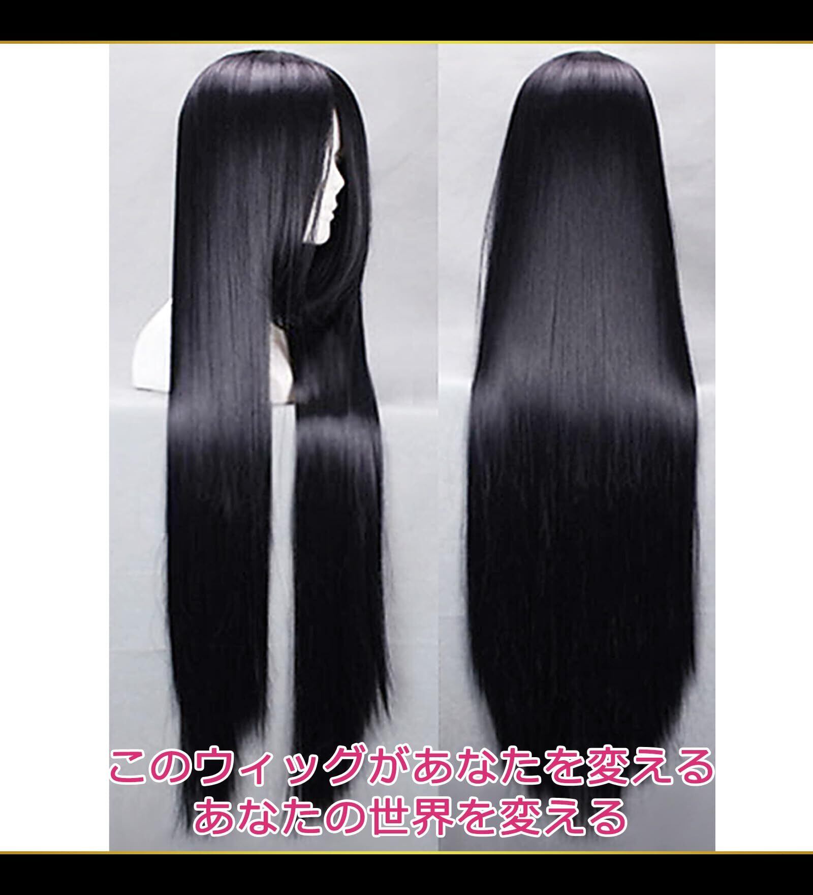 ✅【 あなたを変えるウィッグ 】 美しい黒髪のロングヘアが魅力的で、洗練されたデザインの表情豊かなコスプレ用ウィッグ。 お好みの髪型にカットやアレンジができ、コスプレ初心者の方でも使いやすい本格ウィッグ。 つむじから後ろ髪の毛先まで約100cmの長さです。