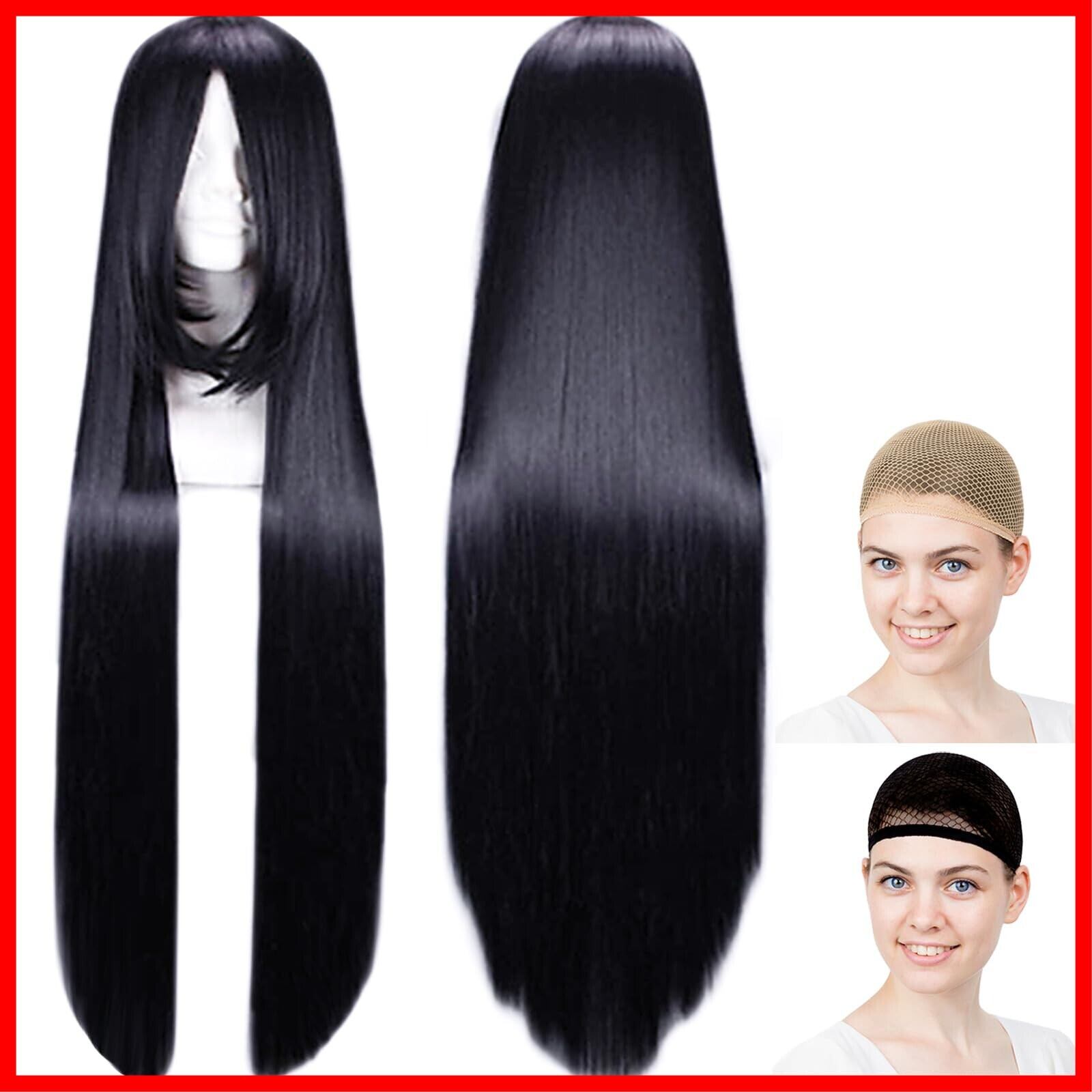 CaseEden コスプレ ウィッグ ロング 長髪 ストレート 100cm 耐熱 ブラック 黒髪 黒色 ウィッグネット2個セット WIG4880