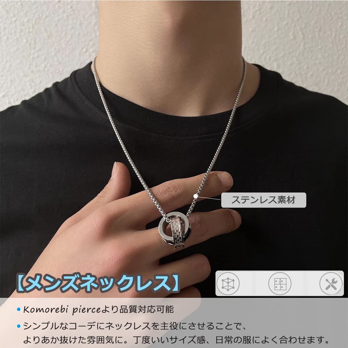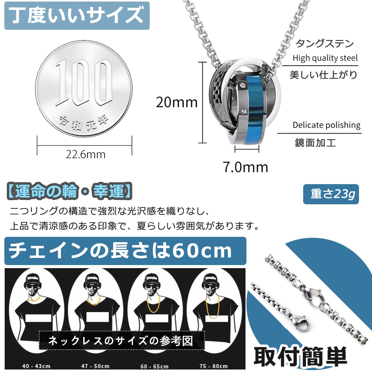 [Kesaeki] ネックレス メンズ 人気 レックレス ステンレス アクセサリー ペンダント メンズネックレス シルバー ネックレス チェーン アレルギー対応 誕生日プレゼント 男性( ブラント登録番号:商願2021-149906) (ダブルリング/ブルー)