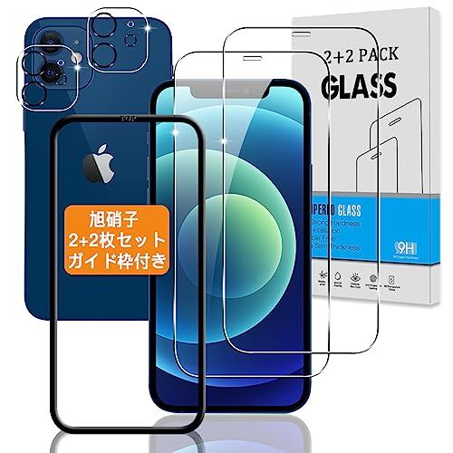 【2+2枚セット ガイド枠付き】 対応 iPhone 12 mini ガラスフィルム + カメラフィルム 【日本旭硝子 硬度9H】 対応 アイフォン 12ミニ フィルム 強化ガラス いphone12 mini 液晶 保護フィルム 3D Touch対応 、高透過率 、気泡ゼロ 、厚さ0.26mm超薄型 、飛散防止 、高感度 、衝撃吸収 、指紋防止 、ラウンドエッジ加工 、簡単貼り付け