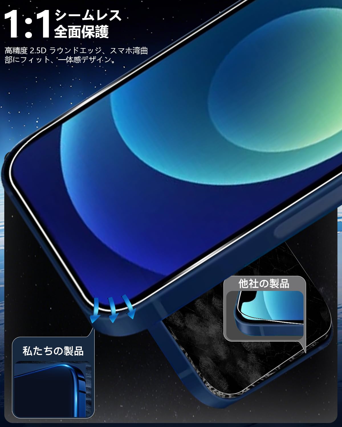 【高透過率】 高品質の日本製旭硝子素材を採用することで透過性がに達しています。市販のガラスフィルムより透明度が高くて、液晶画面の本来の美しさを損なわないません。高精細度でいつでも写真やビデオを楽しむことができます。