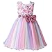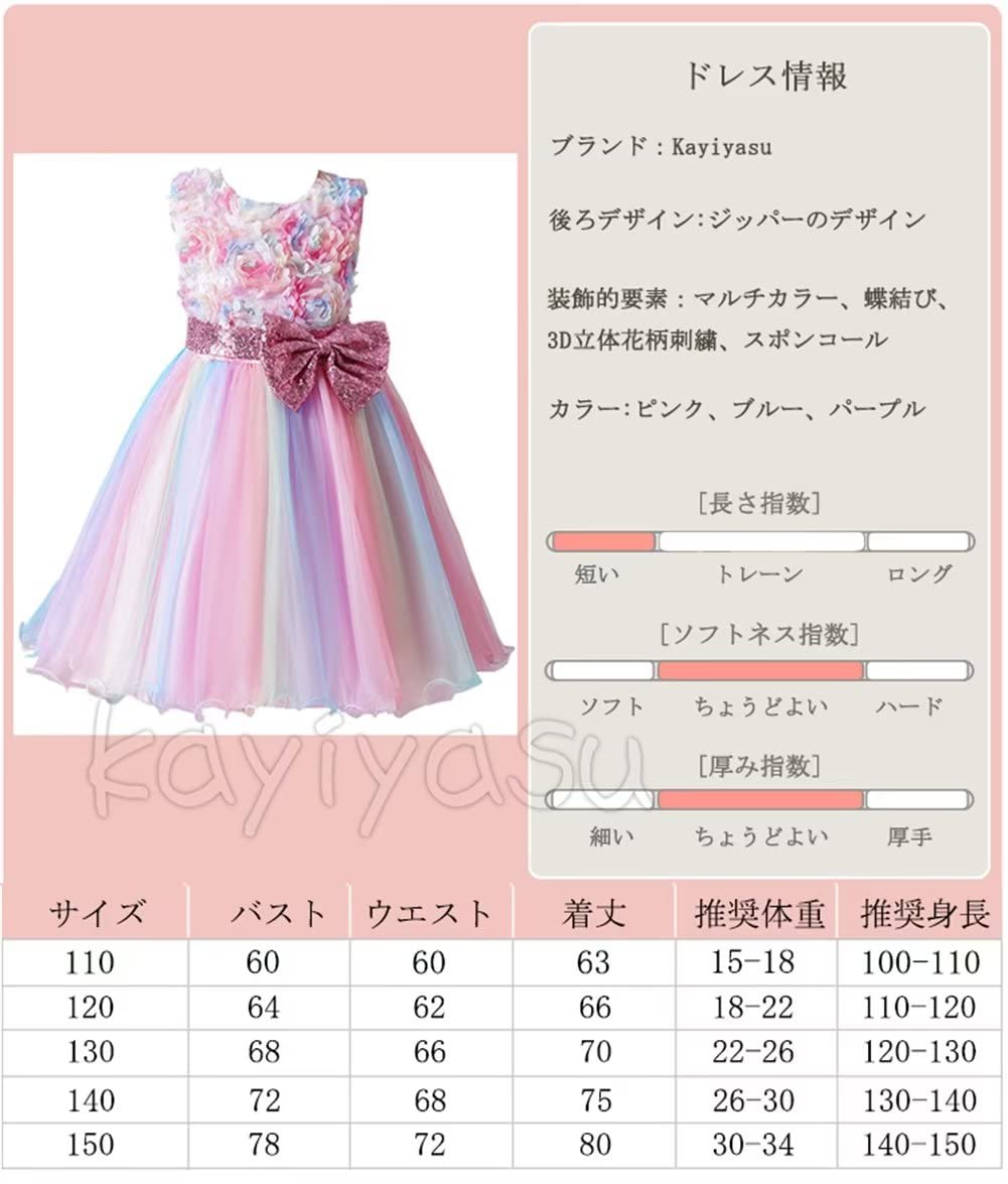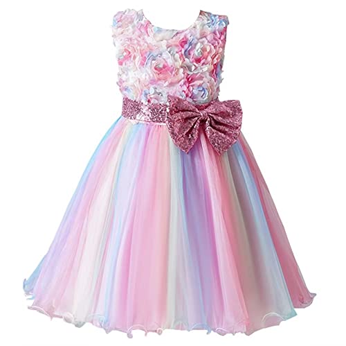 [Kayiyasu] ドレス 子供 ピアノ 発表会 入園式 女の子 虹色 スパンコール蝶結び 花柄 丸ネック フォーマル 卒業式 ガールズ 誕生日 3-13歳(120 虹色(ピング蝶結び))