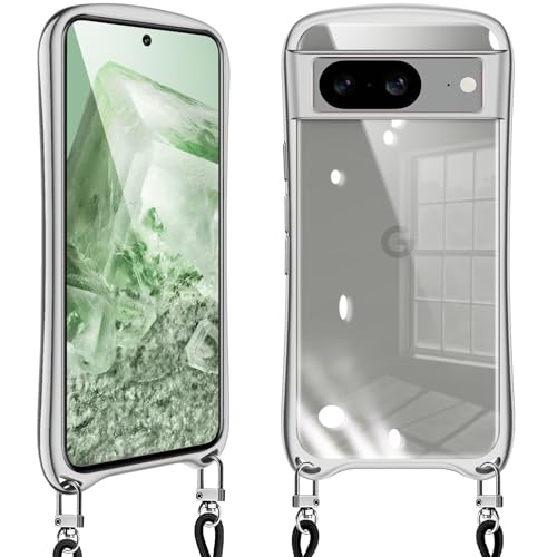 Google Pixel 8 ケース ショルダー クリア ピクセル8 スマホケース カバー 耐衝撃 肩掛け 首掛け 可愛い かわいい 韓国 透明 TPU 長さ調整可能 取り外し可能(シルバー)