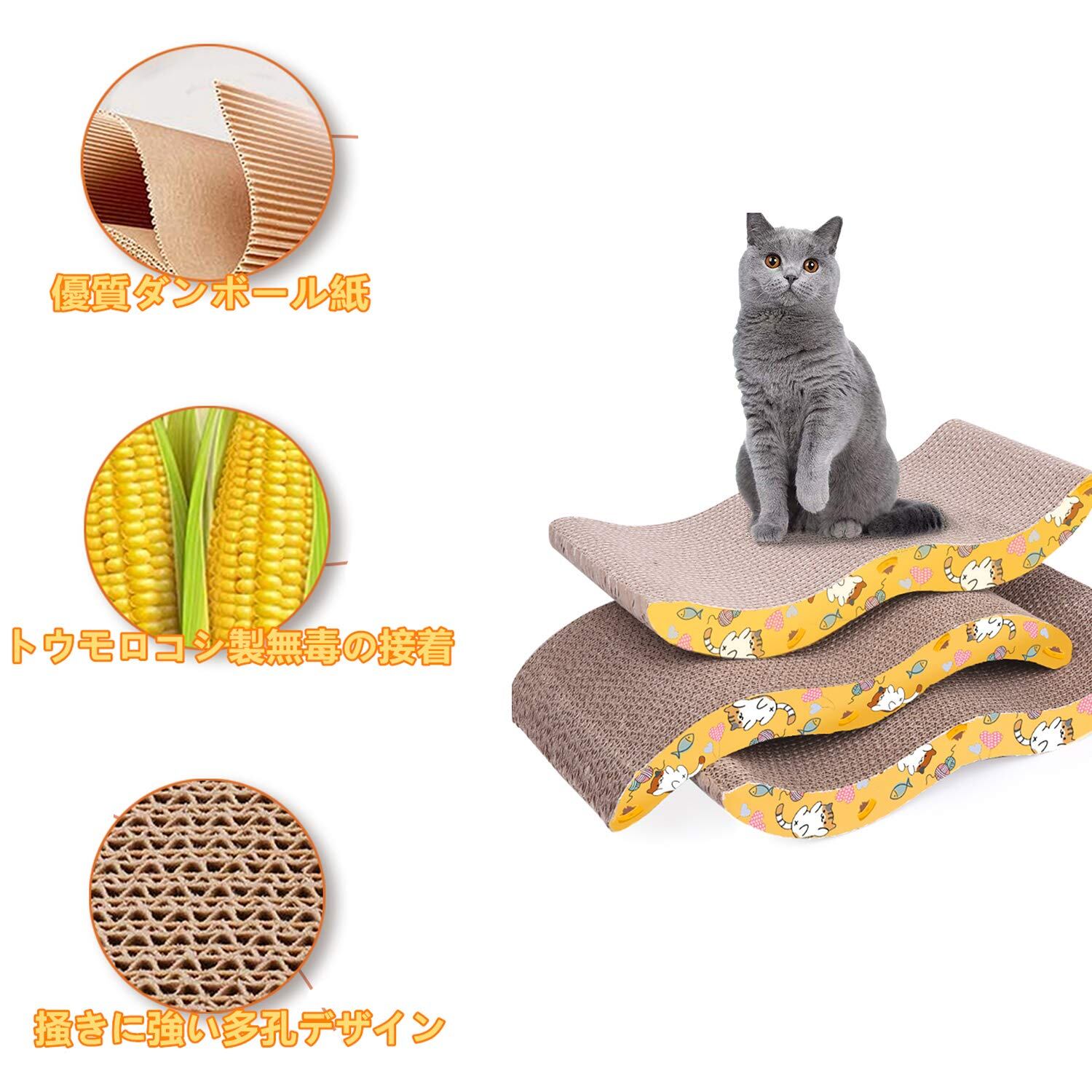 【素材の優勢】爪とぎ部分は、丈夫で研ぎやすい二層構造になっています。また、高密度の段ボール材 料を使い、圧縮性が強くて、曲げにくくて、ネコの肉球に傷つけありません。猫ソファーとして、段ボールの特有な通気性がよく、断熱性能が強くて温度がちゃんと保存されます。一年の四季で猫の快適な生活を送られます。また、100%リサイクルできる段ボールに作られ、無毒無臭,環境にも優しいです。