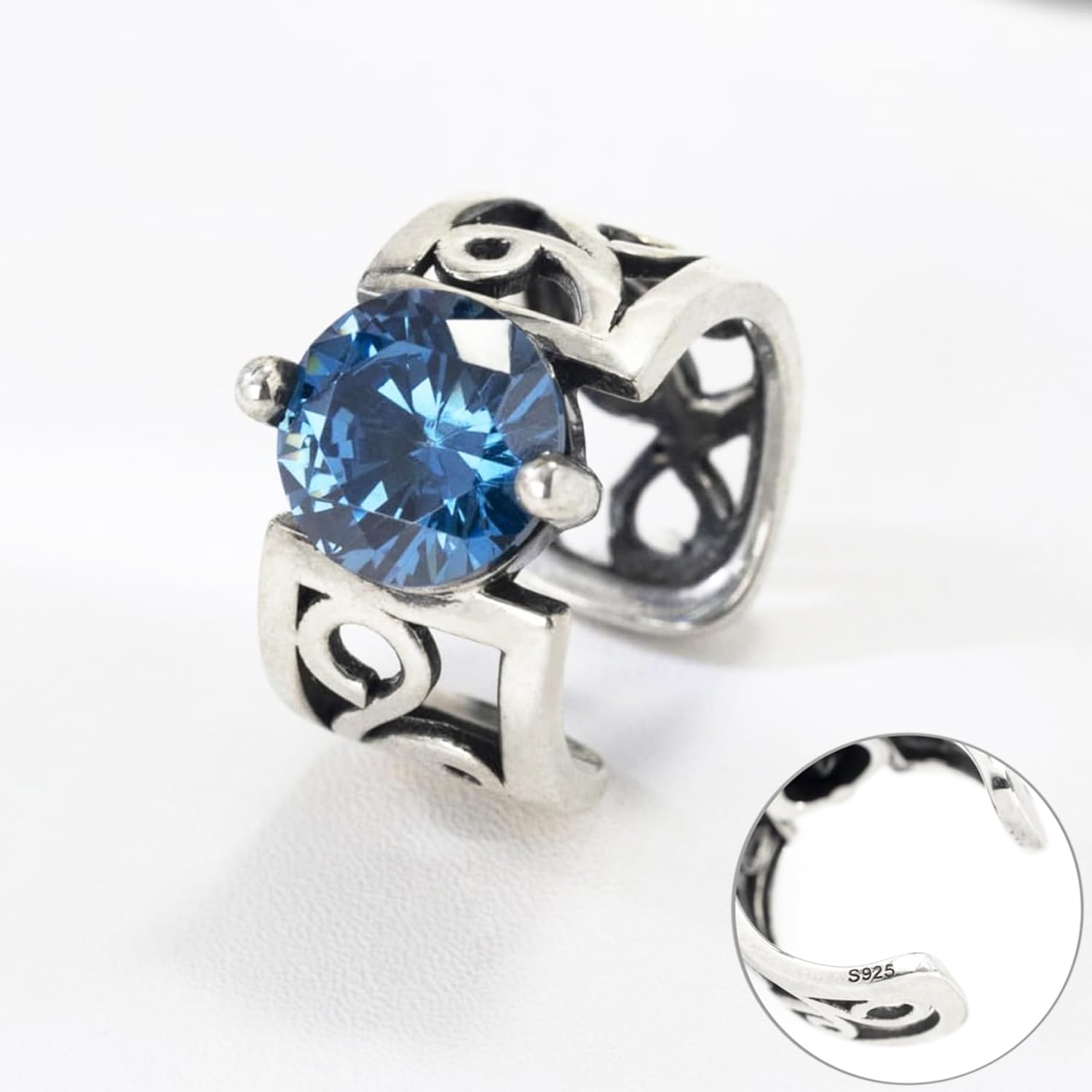 商品の詳細:イヤーカフの外径:約12 mm/内径:約10 mm。サイズ:幅 7 mm、厚さ1 mm;石のサイズ:6 mm。素材:シルバー925(刻印有)、合成サファイア。付属品:精美な包装ケース