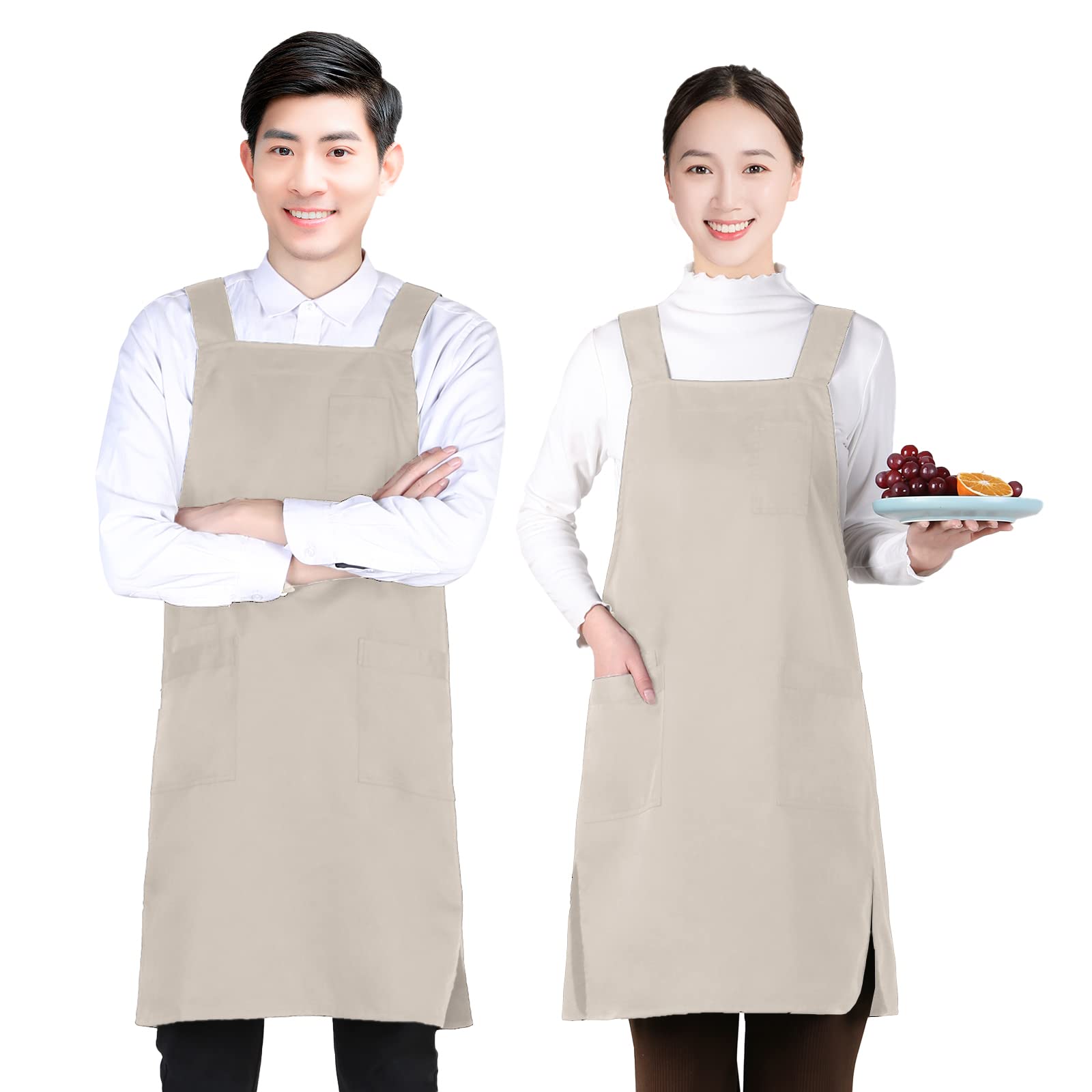 [Poweforest] エプロン H型【M~LL】 調節可能 動きやすい おしゃれ シンプル 無地 カフェ風 エプロン ポケット付き 汚れにくい シワ防止 業務用 仕事用 家庭用 男女兼用 (ベージュ M)