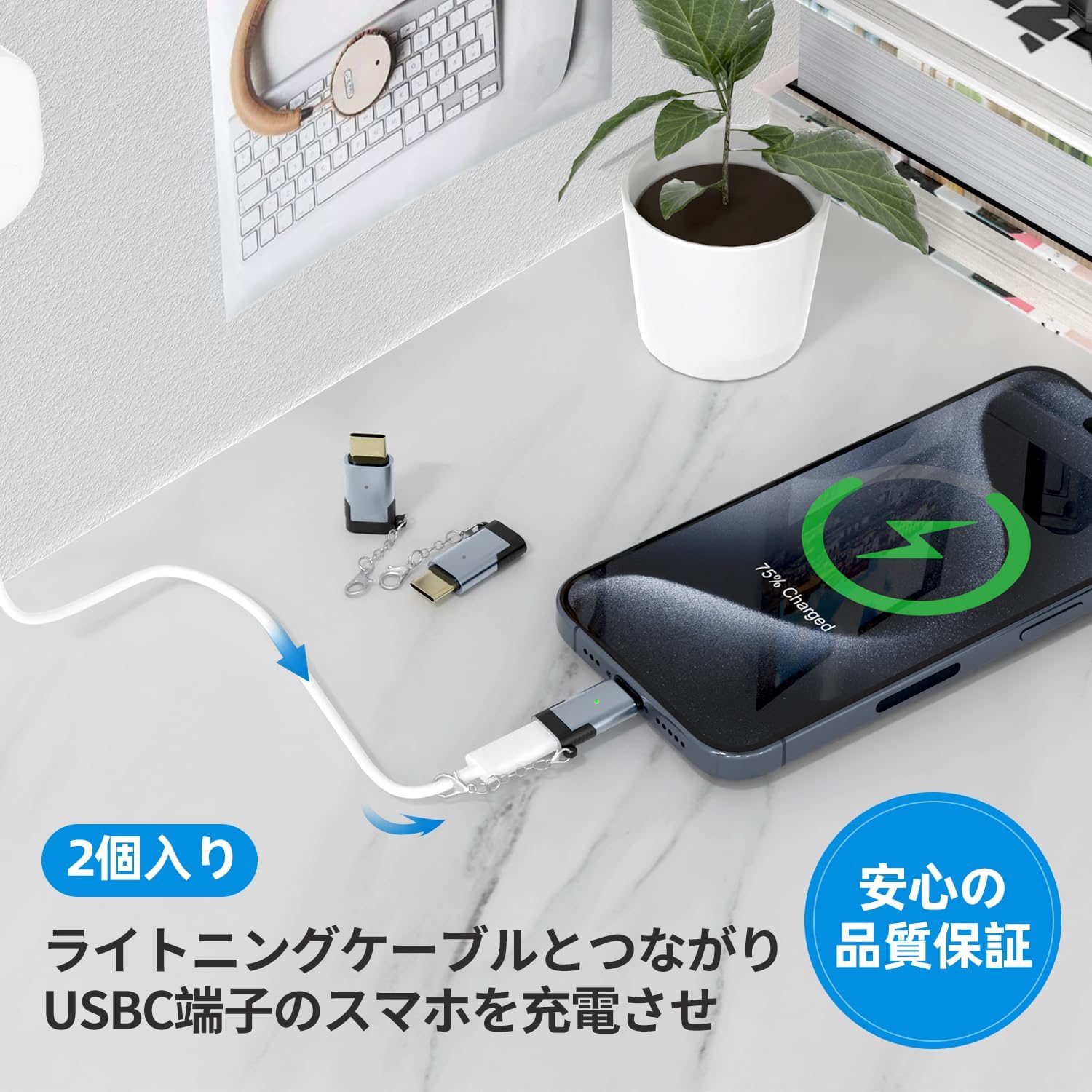 【ケーブルなし・紛失防止】わずか5gの軽量なライトニング タイプc 変換アダプタは、メタルのチェーン付きでいつでも携帯でき、紛失の心配がありません。ライトニング タイプc 変換アダプタは断線の心配もなく、コンパクトな設計で持ち運びに便利です。