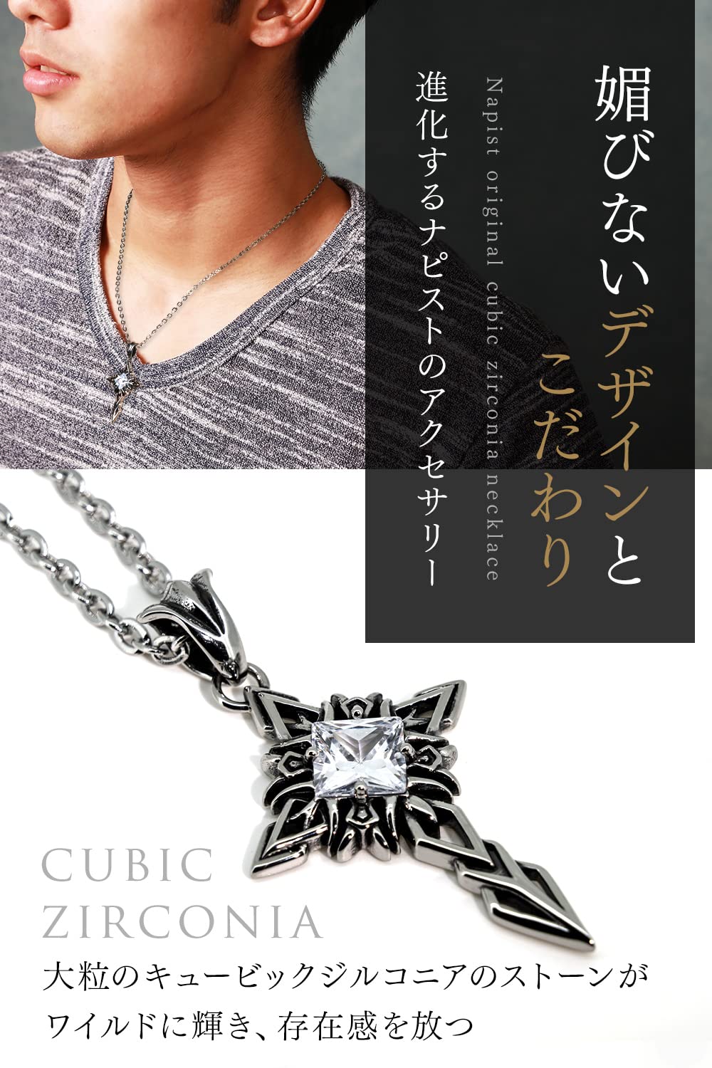 Napist ネックレス メンズ 十字架 キュービックジルコニア 316L サージカルステンレス [ 金属アレルギー対応 ] シンプル ロザリオ クロス NPN089 シルバー