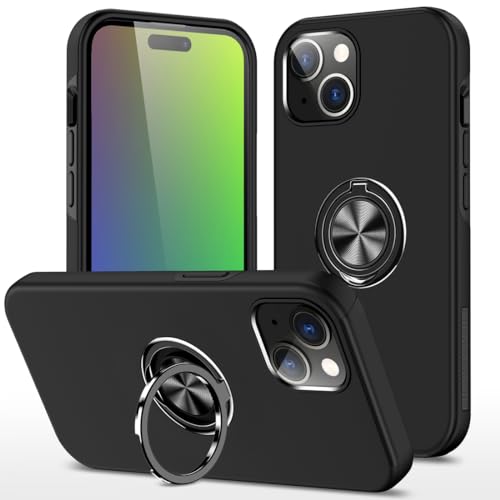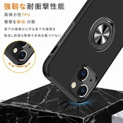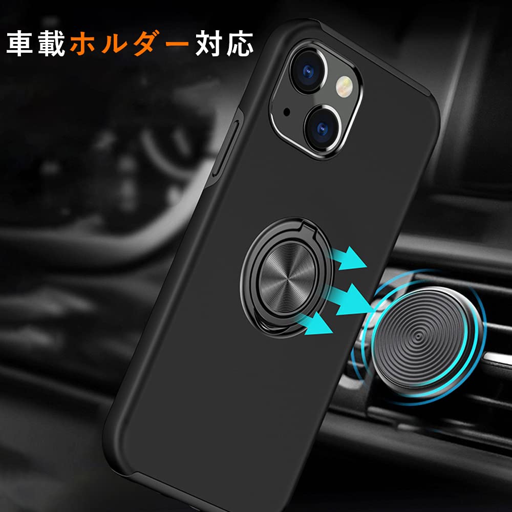 iPhone 15 用 ケース リング付き 耐衝撃 TPU 二重構造 アイフォン15 カバー リング Uovon スマホケース あいほん15 リングつき スタンド機能 車載ホルダー対応 擦り傷防止 落下防止 おしゃれ · ブラック