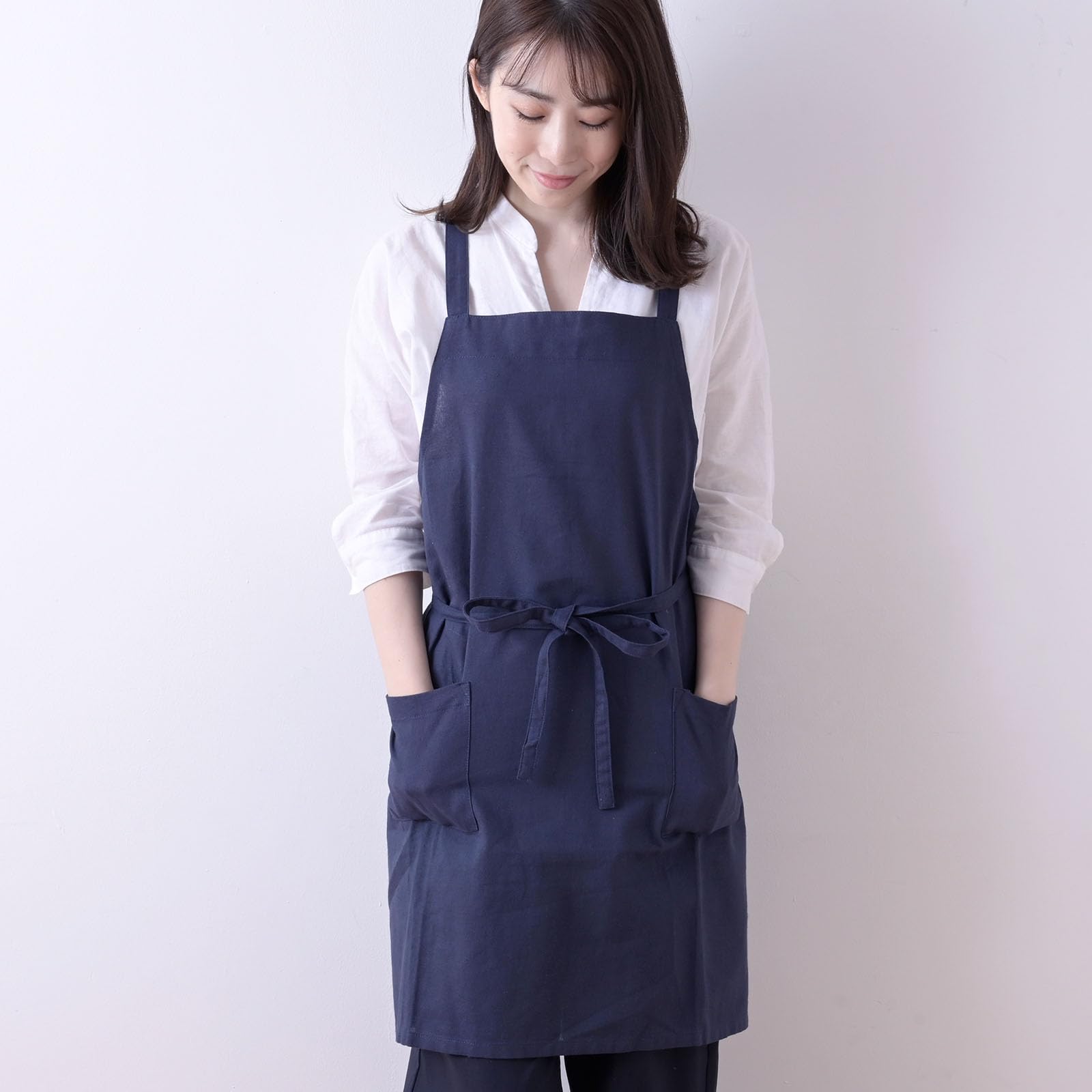 [レップ] エプロン 北欧 ポケット2個付き カフェエプロン 大人用 着丈73cm (アビチュアル ソル) ネイビー NV 547687-MAIL プレゼント