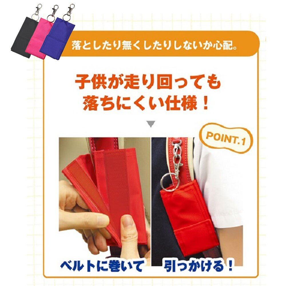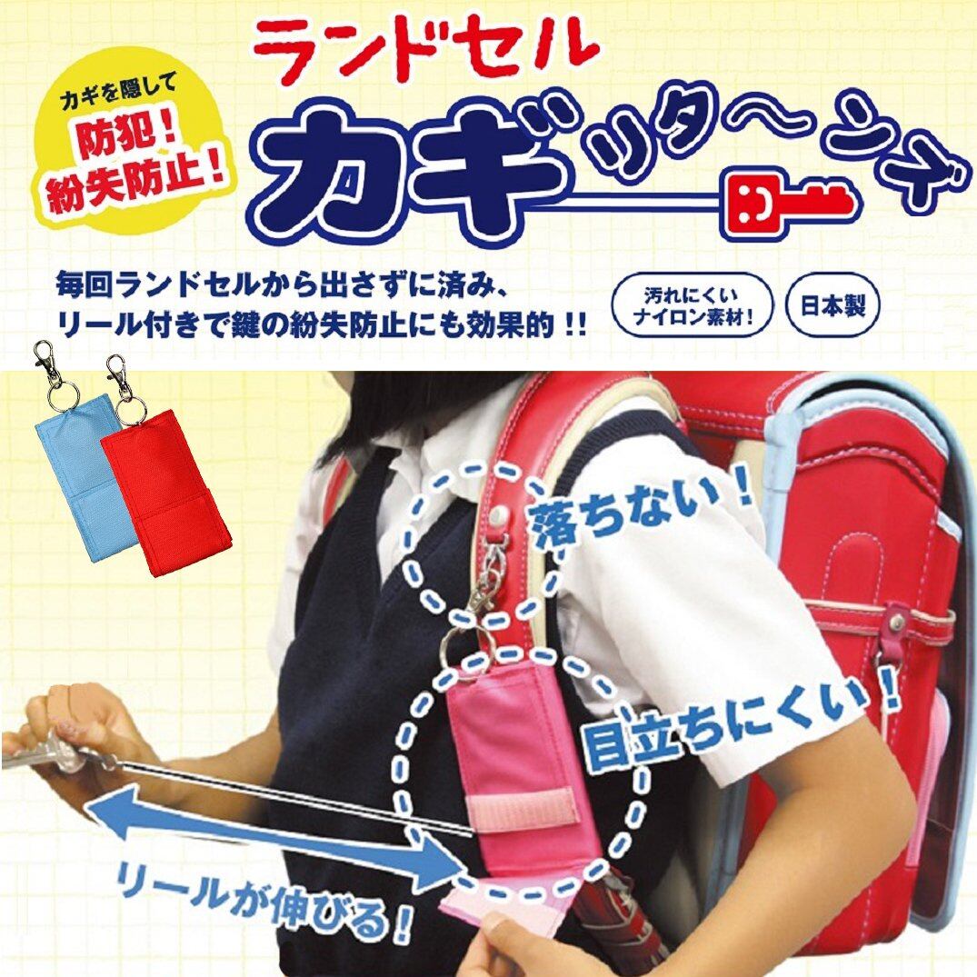 ランドセルのベルトに取り付けられるキーケース。リール付で鍵の紛失を防ぎます。