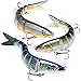 【高いシミュレーション】ABS素材で作られた本物に近い3D魚眼と光沢のある鱗を持つスイムベイトは、実際の魚の色や模様を巧みに再現します、外観からも本物の小魚ように生き生き見えます。ターゲットにしている魚も騙されてしまい、釣果が上がります。また、飛行時にジョイント部の可動域を制御する事は比較的簡単に出来ます。しかし、着水と同時に可動域が復元される。