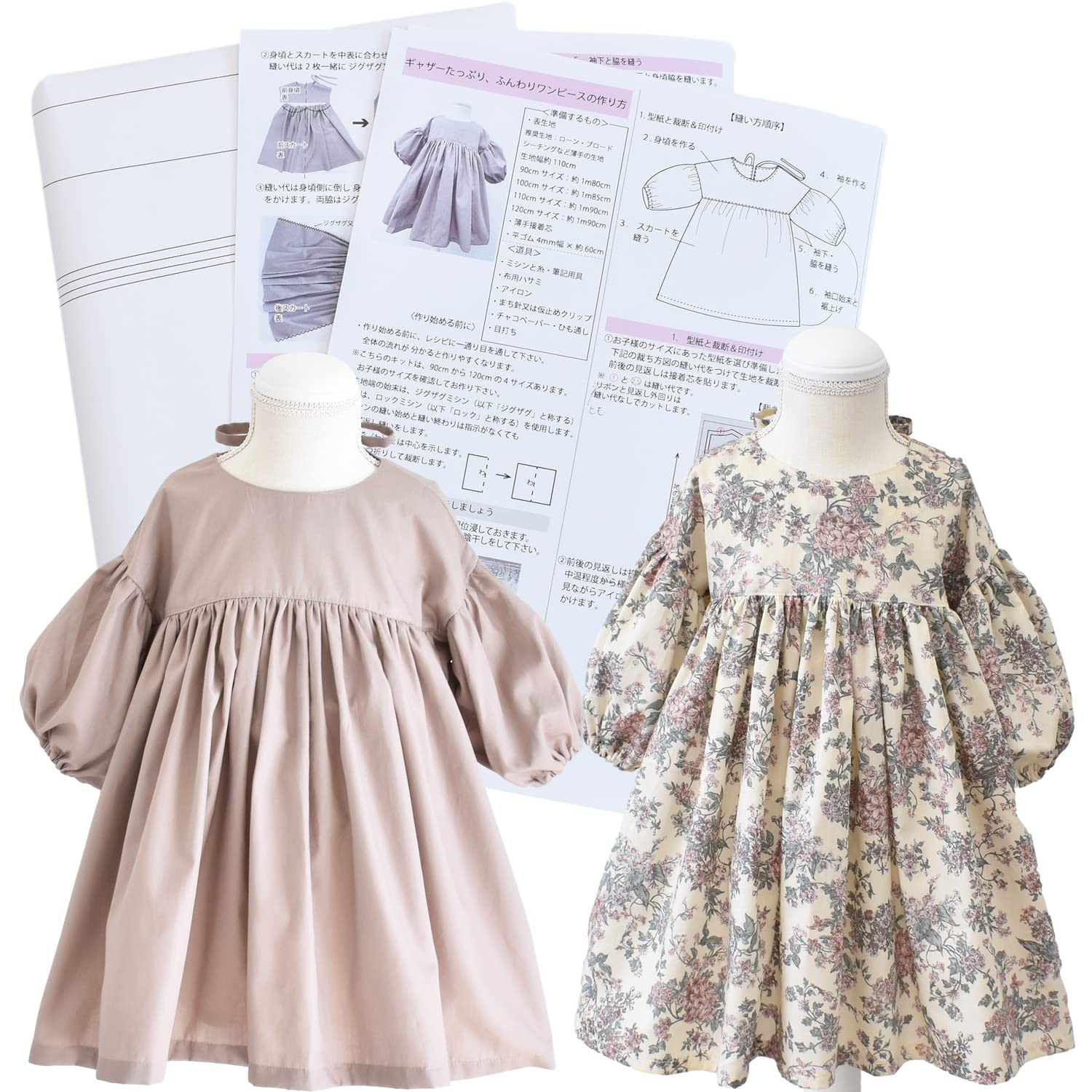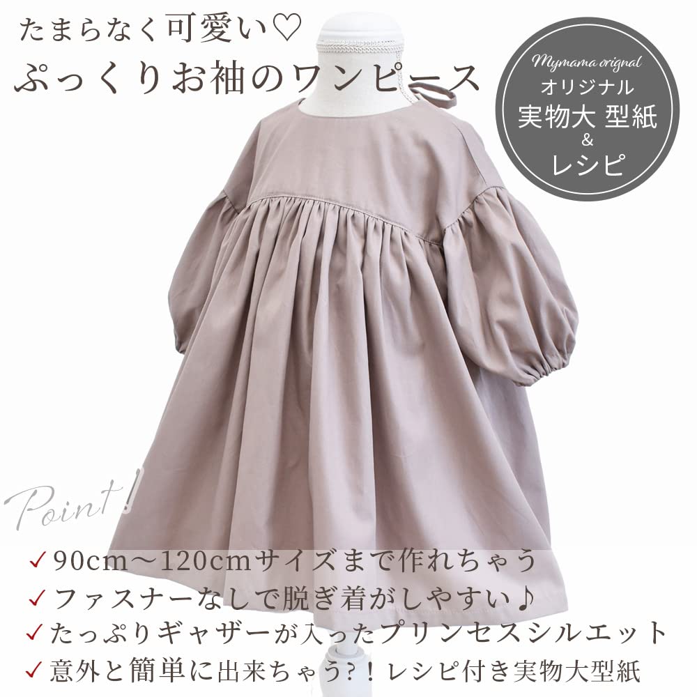 MYmama オリジナル 型紙&レシピ販売 ふんわり袖が可愛い キッズワンピース 子供用 90~120cmサイズ 裁縫 中級 手芸用品