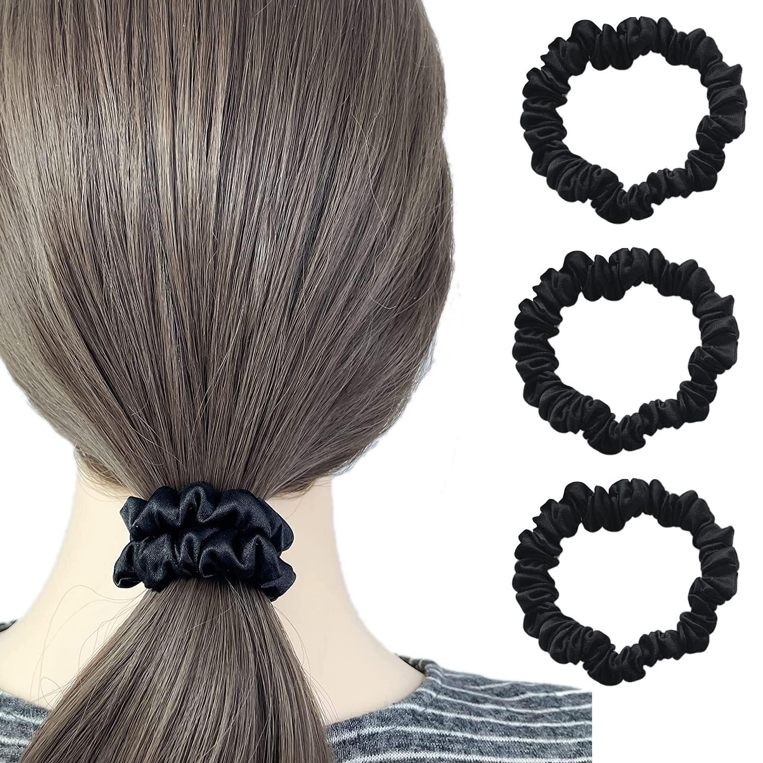 YINKE ヘアゴム シュシュ シルク 髪ゴム 跡がつかないヘアゴム 髪留め 髪ゴム ヘアリング 髪束ね おしゃれ 大人 簡約 高弾性 シンプル 3個セット (ブラック)