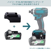 【対応機種】ハイコーキ対応14.4V/18V/36Vバッテリーでマキタ対応18V工具を使用できます。