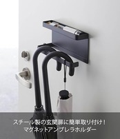 山崎実業(Yamazaki) トレー付きマグネット アンブレラホルダー ブラック 約W20XD7XH9.5cm スマート 傘立て 玄関扉収納 フック付き 5042