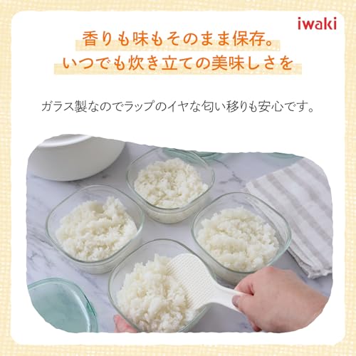 iwaki イワキ 耐熱ガラス 保存容器 グリーン 角型 S 450ml ごはん 1膳 パック&レンジ