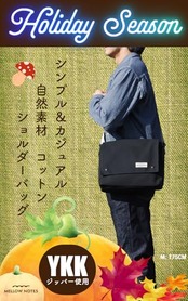【素材】コットンキャンバス(綿・帆布) 裏地:ポリエステル 自然素材のコットンキャンバスは厚手の質感と手触りが心地良いショルダーバッグ。伝統的な配達カバンの原型を残し、ザックリと使い易いメッセンジャーバッグ風に仕上げています。斜め掛けバッグとしての使用をお薦めします