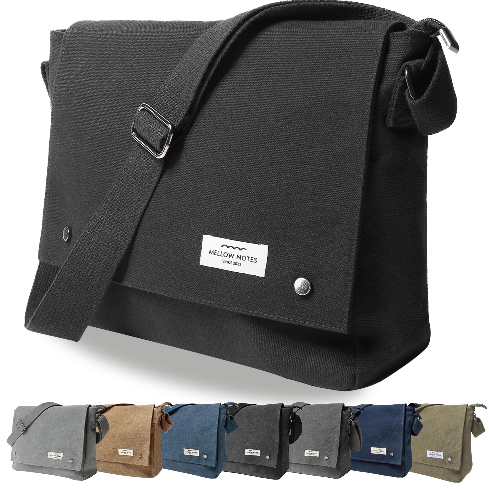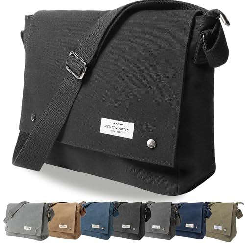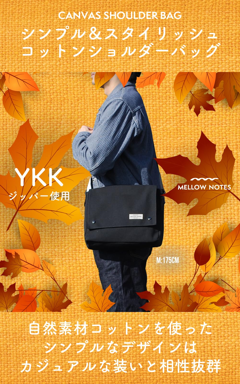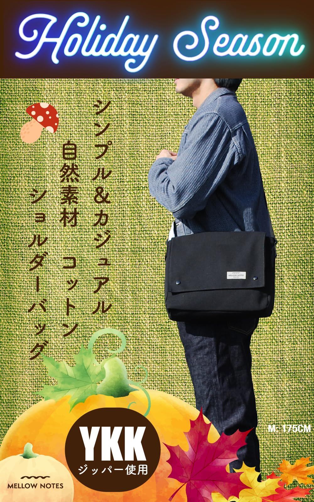 [MELLOW NOTES] [メローノーツ] ショルダーバッグ メンズ ショルダー バッグ 肩掛け メッセンジャーバッグ YKK 斜めがけ 帆布 キャンバス a4 シンプル カジュアル 人気 (ブラック)