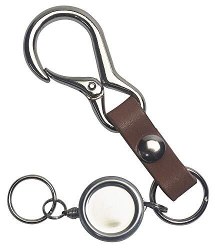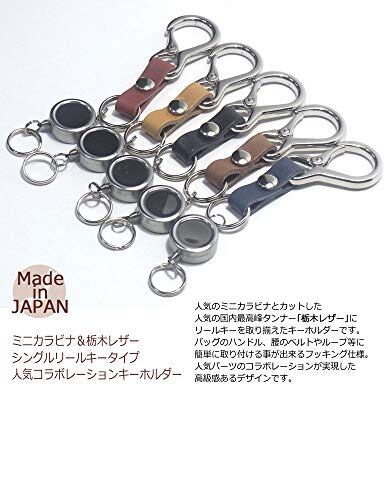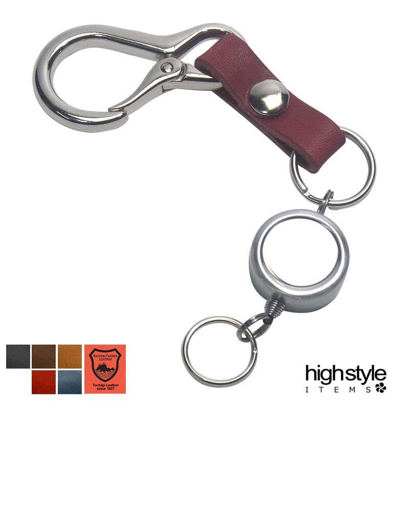 [highstyle] 栃木レザー&ミニカラビナ&シングルリールキー キーホルダー (ダークブラウン)