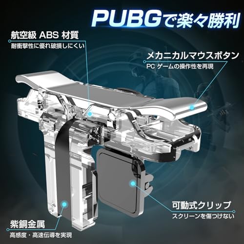 【高感度・小体積】メッキ加工材採用、導電性と感度が高めました。安定した高速応答を実現。「単一クリックは明確で、連続クリックは決して中断しない」という優れた性能を持っています、これまでのシューティングゲームコントローラの中では最高級品です。また、PUBG Mobile コントローラーは軽量型ので持ち運びやすくて、場合と問わず、すぐにゲームを楽しむことができます