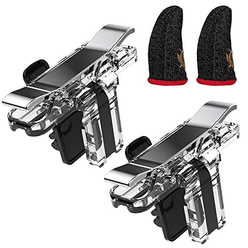 IUGGAN 荒野行動 PUBG Mobile コントローラー 透明 最新 pubg モバイル スマホゲーム パッド クリック感 高感度 ジョイスティック 射撃ボタン 左右兼用 連続射撃 電源ボタンと干渉しない 無段階調整 ケース対応 iphone/Android 各種ゲーム対応可能 指サック付き【2個パック】 (透明)