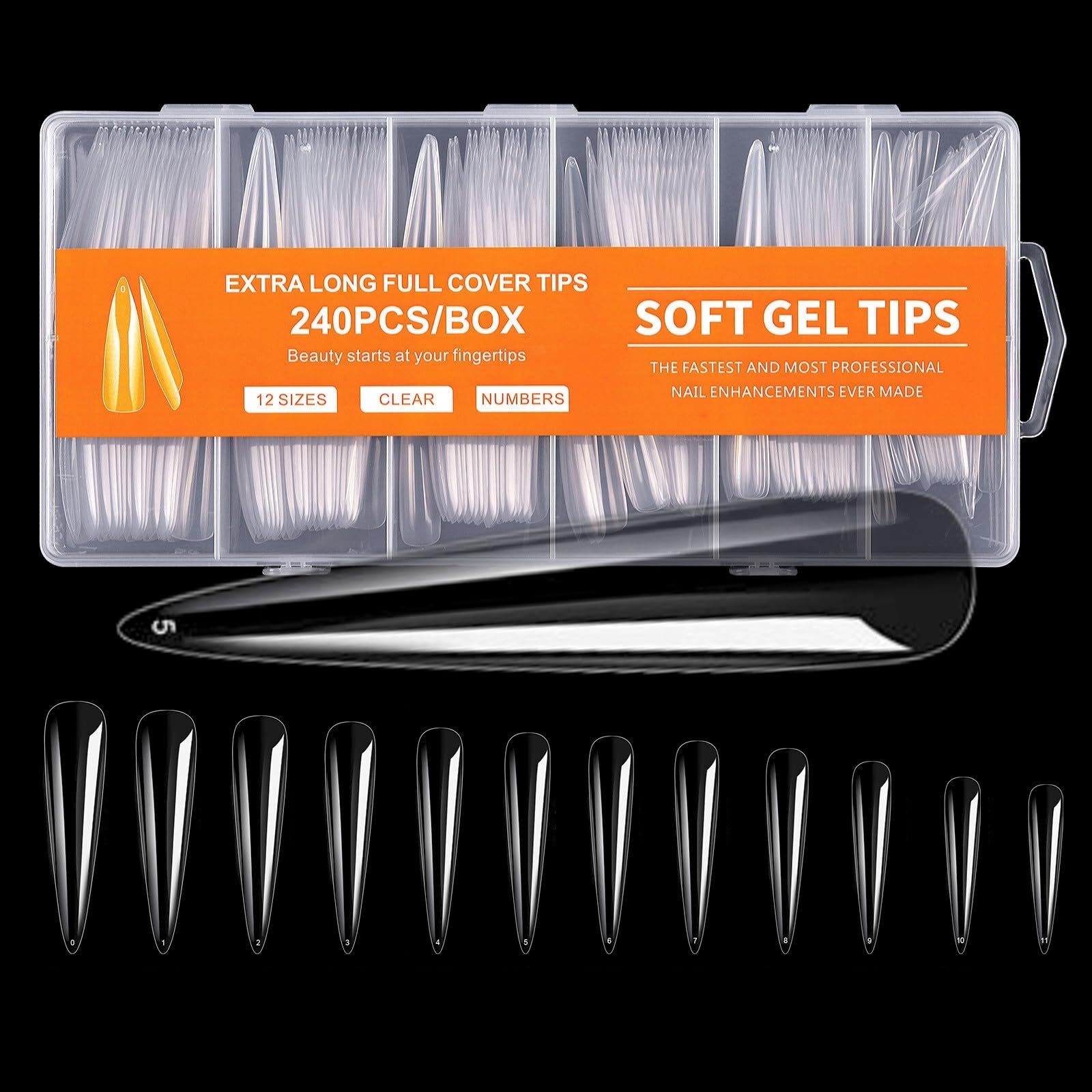 【ケース寸法】25.5x12x1.7cm 【サイズ】12サイズ 【数量】240pcs 【カラー】クリア 【素材】ABS