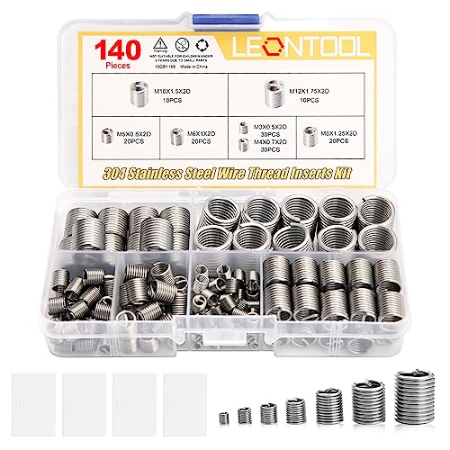 LEONTOOL ヘリサート用コイルバネ リコイルパケット Eーサート リコイルヘリサート ステンレススチールヘリコイル ステンレス ねじ修理用 インサート 140個入り ねじ修理キット ネジ穴補修キット ネジ穴 補修リコイルキット コイルドワイヤヘリカルねじインサート スレッドインサートキット ねじ式インサート 取り付けツール付き 高硬度 自動修理 木製家具用 ボックス付き