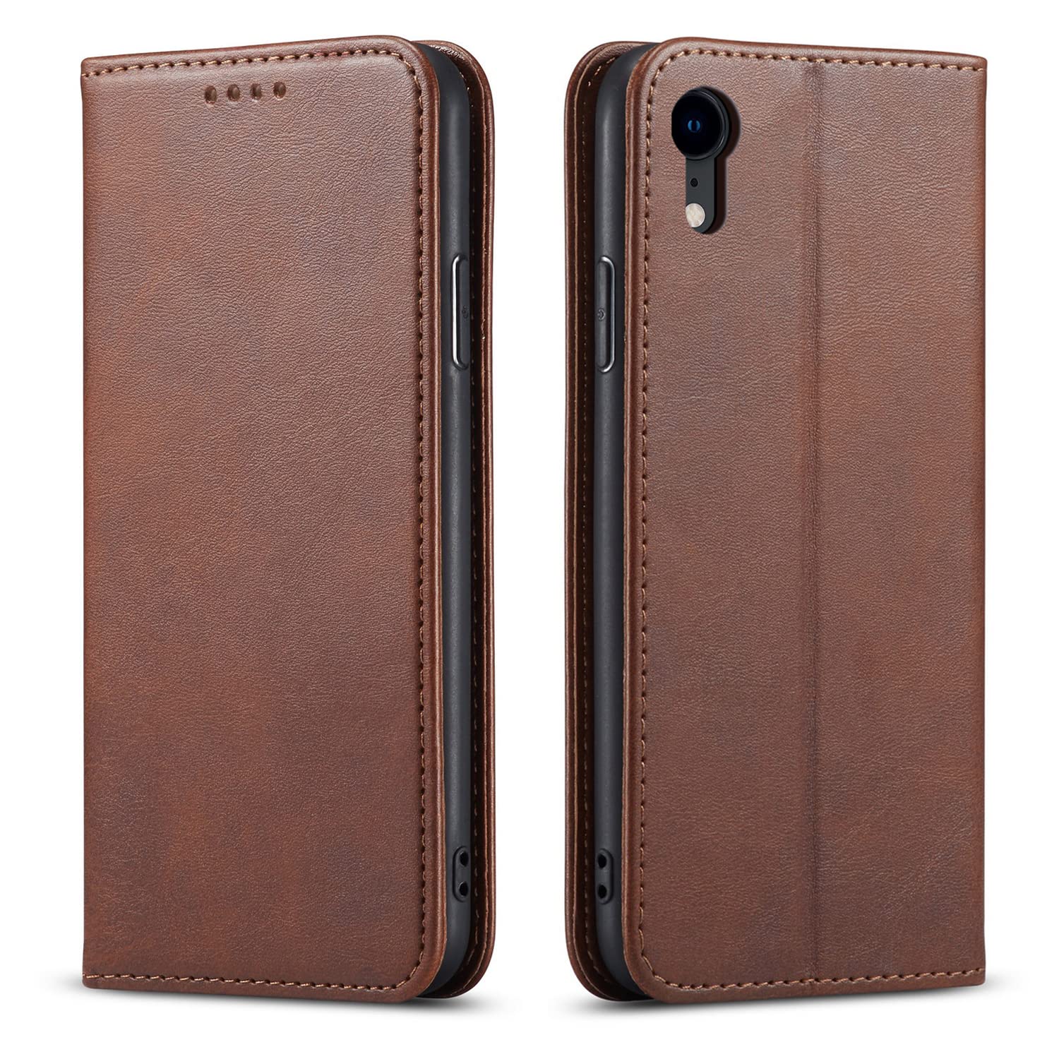 iphone xr ケース イフォン xr スマホケース 手帳型 携帯カバー レザー 耐衝撃 軽量 着脱しやすい 放熱性 マグネット式 カード収納 スタンド機能 iphone ケースxr 対応 360度保護 PinLiSheng (iphone xr ブラウン)