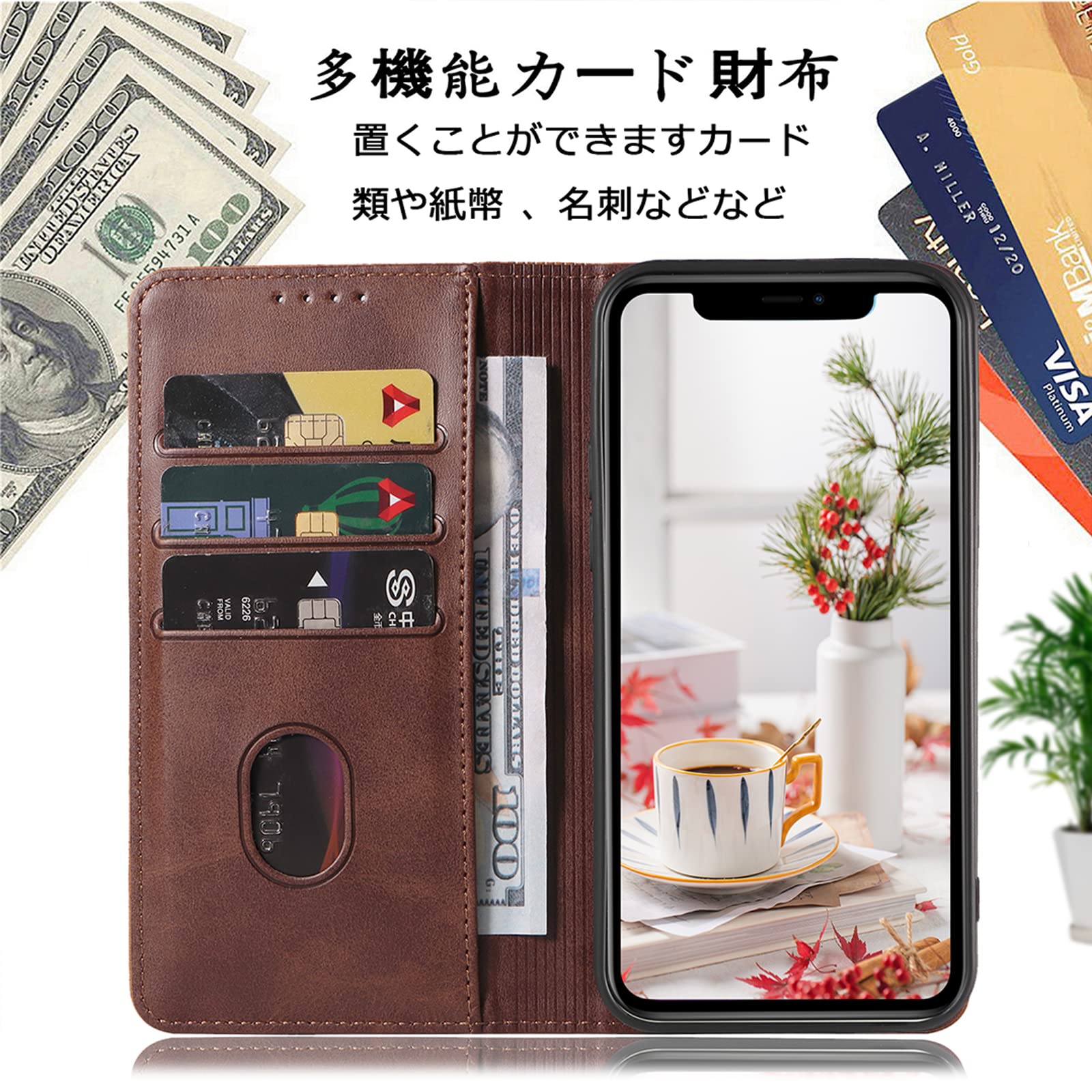 【カード収納】内側にはのカード入れとフリーポケットがつき、名刺や定期券の収納に優れているiPhone ケースです。普段の生活に便利をもたらします。