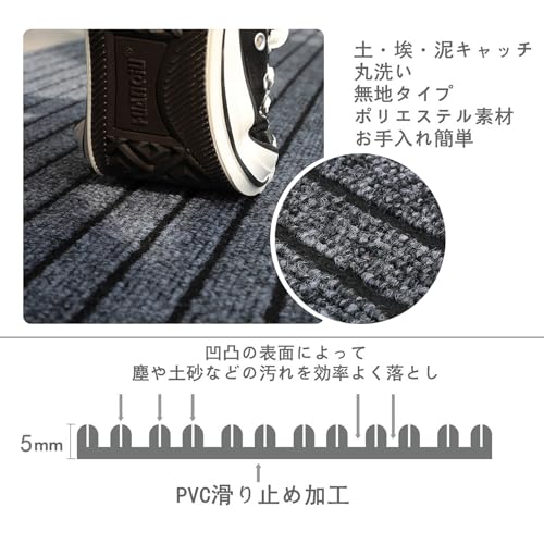 NEWSHOER 玄関マット 屋外 室内 滑り止め 業務用 家庭用 速乾 吸水 泥落とし 洗える エントランスマット 耐磨耗性 玄関 オフィス お店(90*180) グレー 90cm*180cm