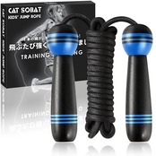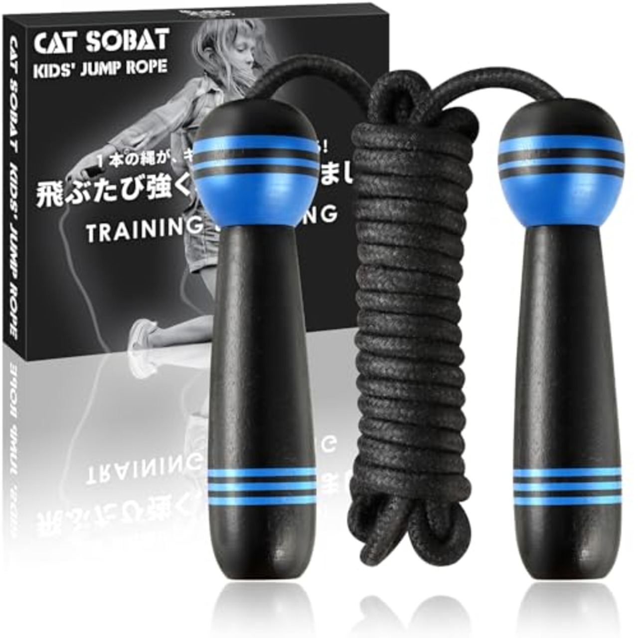 Catsobat 縄跳び トレーニング用 縄跳び教室用 お子様 ジュニア なわとび ロープ調整可 かわいい木製デザイン【メーカー30日保証付き】 (くろあお色(blackblue))