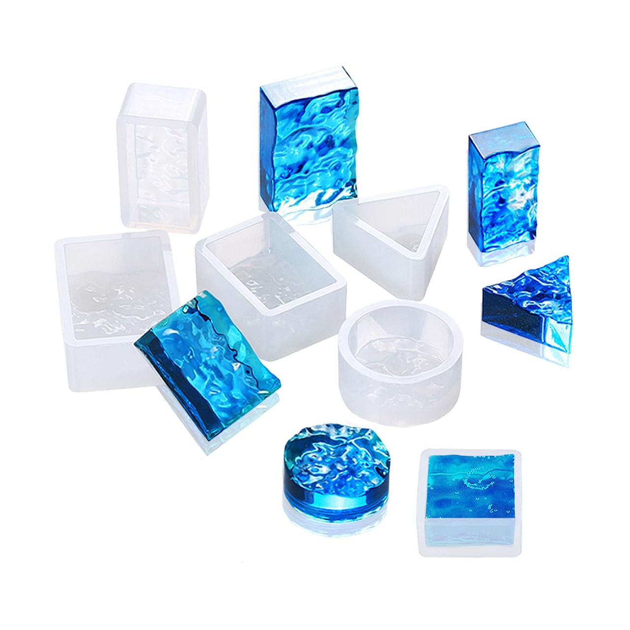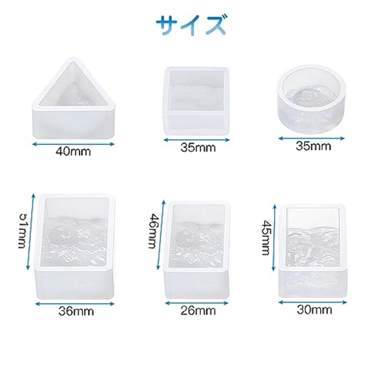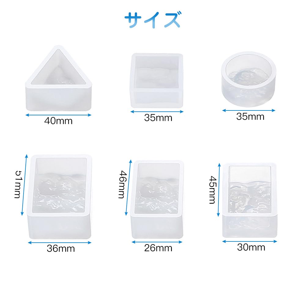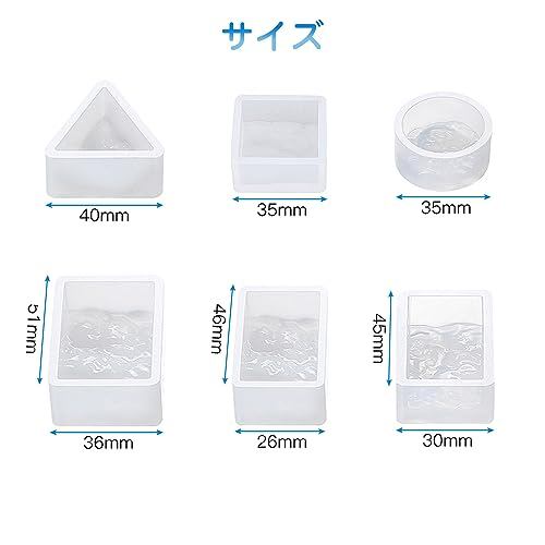 サムコス 波模様 シリコンモールド 6個セット 三角 丸 正方形 長方形 uvレジン エポキシ DIY ュエリー作り イヤリング キーホルダーモールド 波紋 樹脂 工芸品 作成 (T)