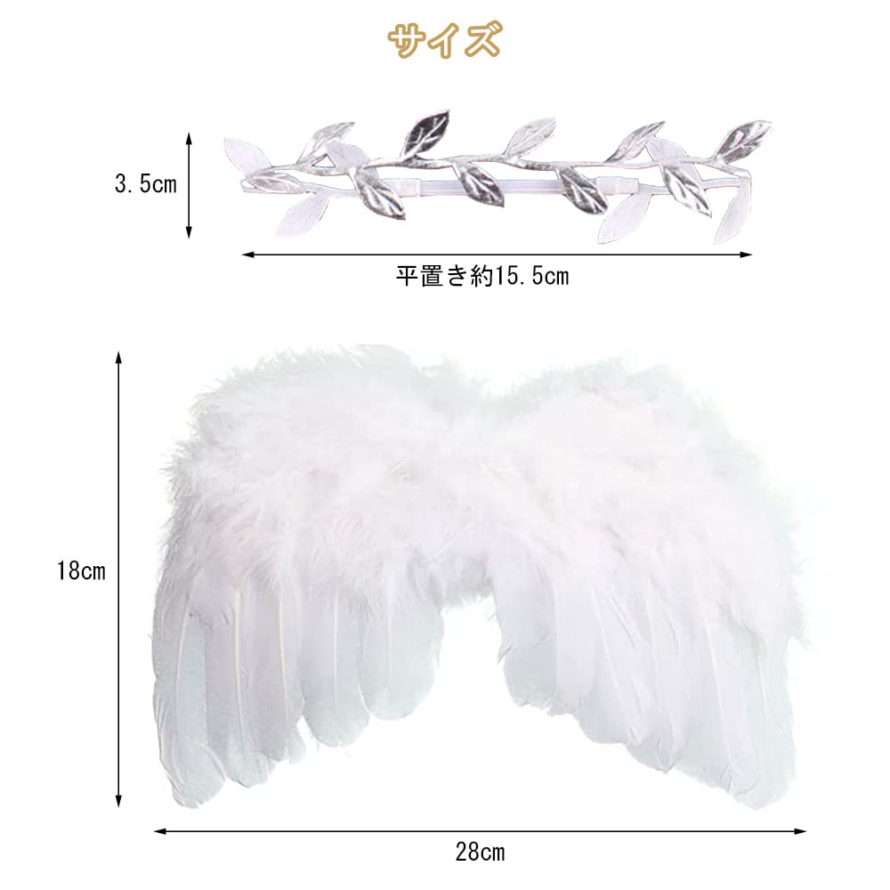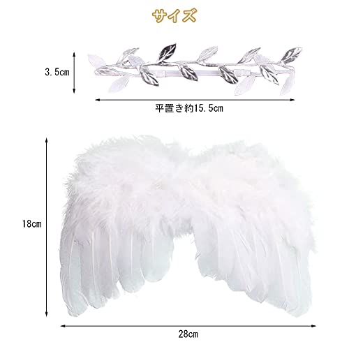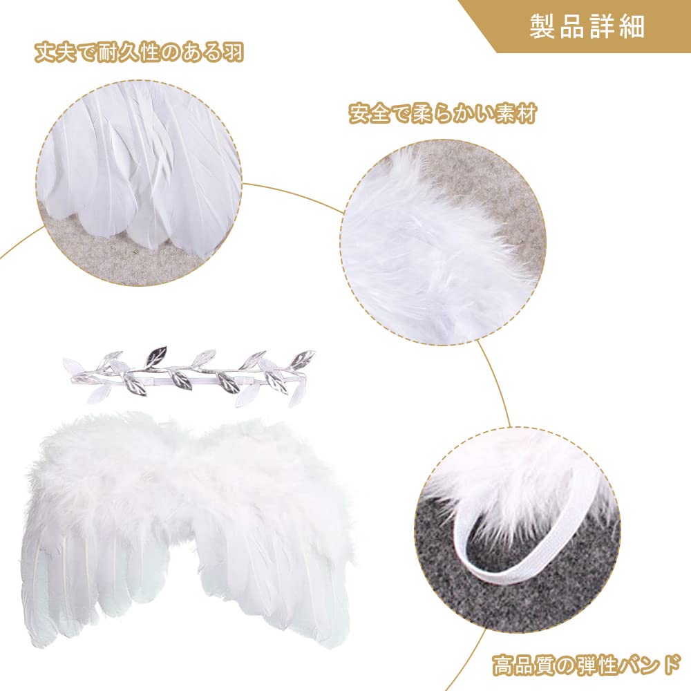 【高品質な素材】ヘアバンドと肩にかけるゴムは高品質の弾性バンドでできています、新生児の敏感な肌に負担をかけません。白い羽と銀色のヘアバンドは安全で柔らかい素材で構成され、非常に軽く、翼は頑丈で耐久性があり、変形や色褪せしにくいです。