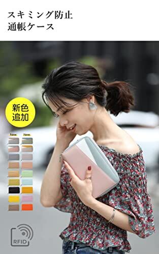 [KYOWARABE] 通帳ケース 通帳 ケース 磁気防止 通帳入れ 【見た目以上の収納力×選べる18カラー×通帳ポケット8カートケース12】(スモーキーピンク×ライトブルー)
