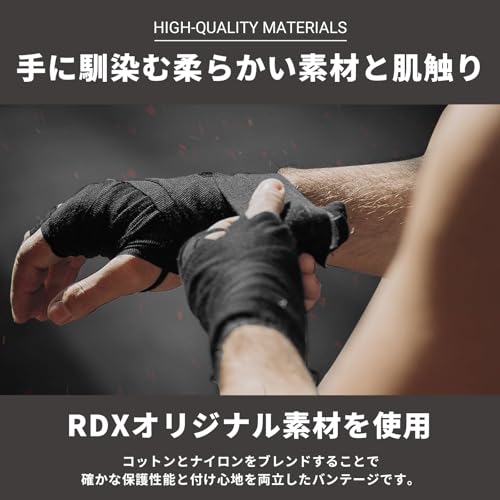 【高品質素材】RDXのバンテージにはナイロンとコットンをブレンドした素材が使われています。摩耗や擦れに強く丈夫で長持ちします。また、通気性にも優れている為、激しいトレーニング中でも蒸れを防ぎ快適な付け心地です。