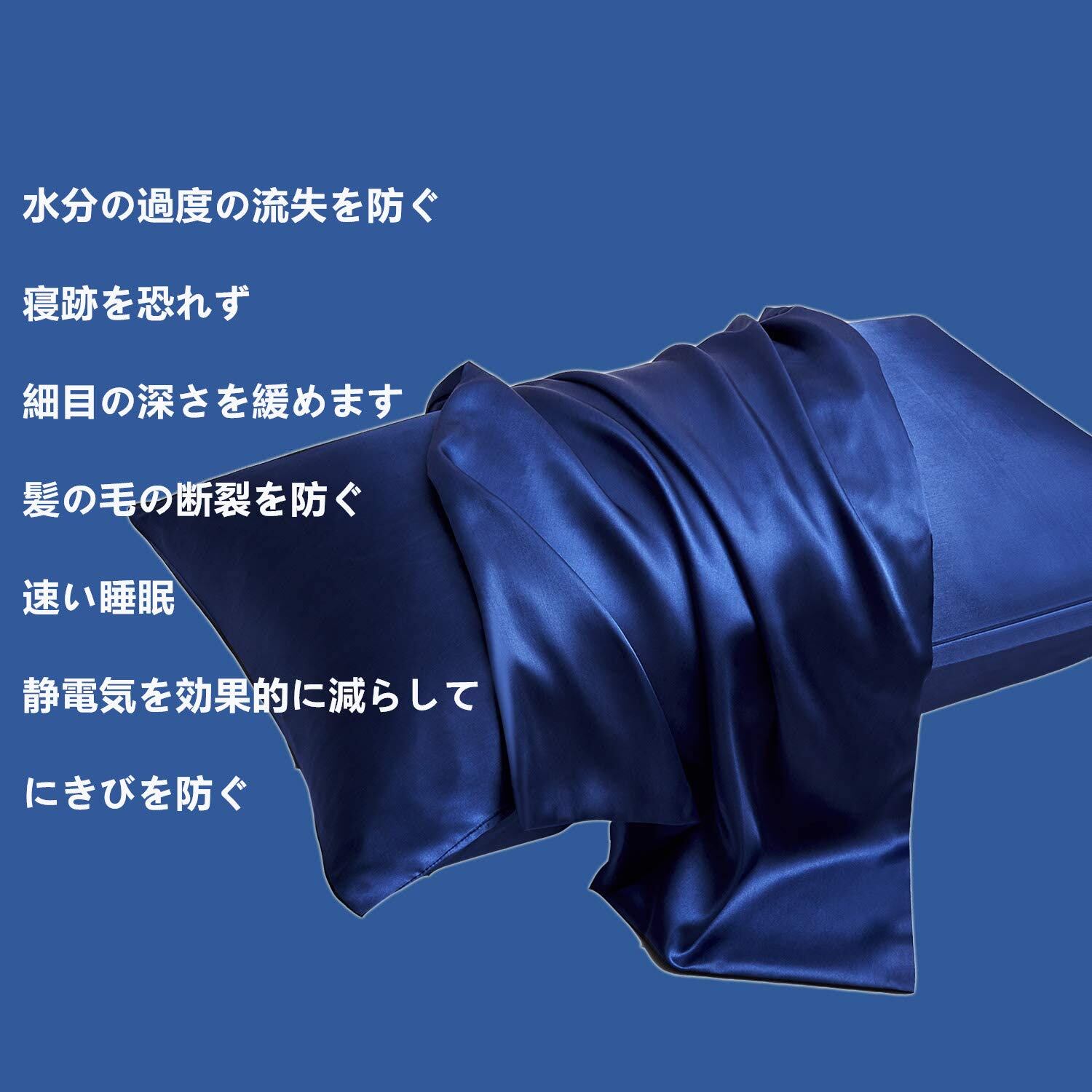 枕カバー 2枚セット サテンの枕カバー 封筒式ピローケース 美肌 美髪 両面シルクタイプ 滑らかな材質 静電気防止 (50*70 青い)