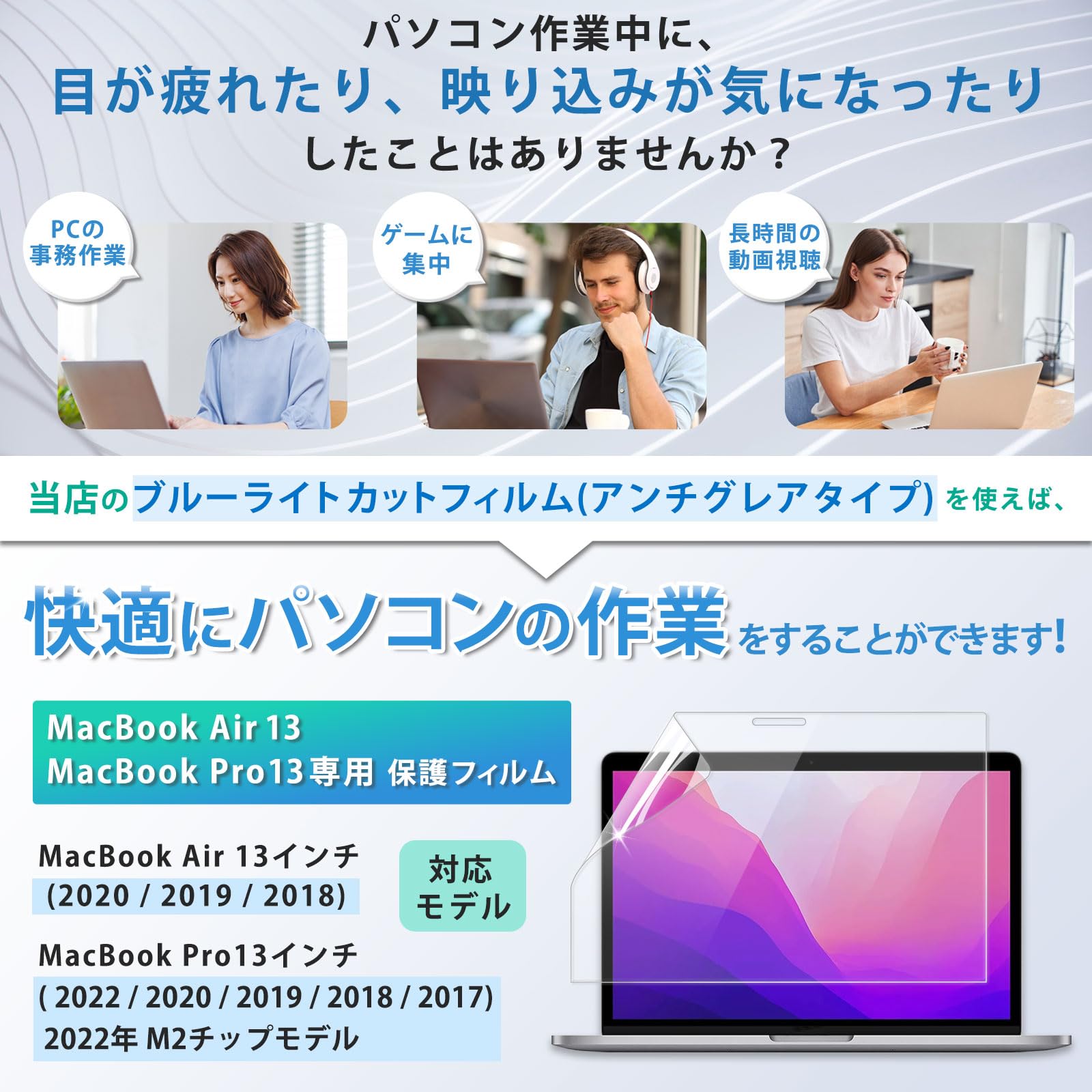 アンチグレア ブルーライトカット MacBook Air13 / MacBook Pro13 M1 用 フィルム 液晶 保護フィルム マックブックエアー プロ 13インチ 反射低減 指紋防止 抗菌