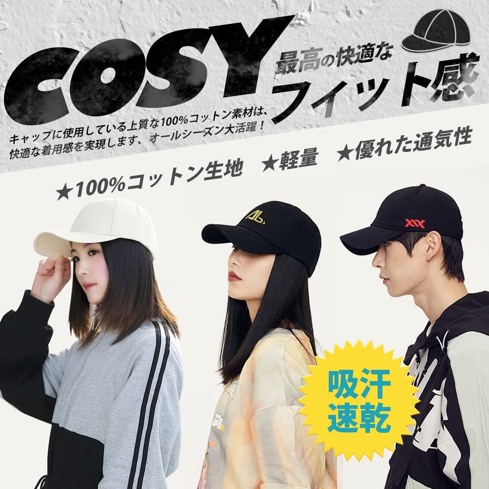 【コットン100%・快適フィット】快適なかぶり心地と最高のフィット感を追求したキャップで、シンプルなデザインでどんなスタイルにもハマる定番アイテムです。キャップに使用している上質な100%コットン素材は、素早く汗を吸い上げ、速乾性に優れます、通気性が良いです、快適な着用感を実現し、オールシーズン大活躍!