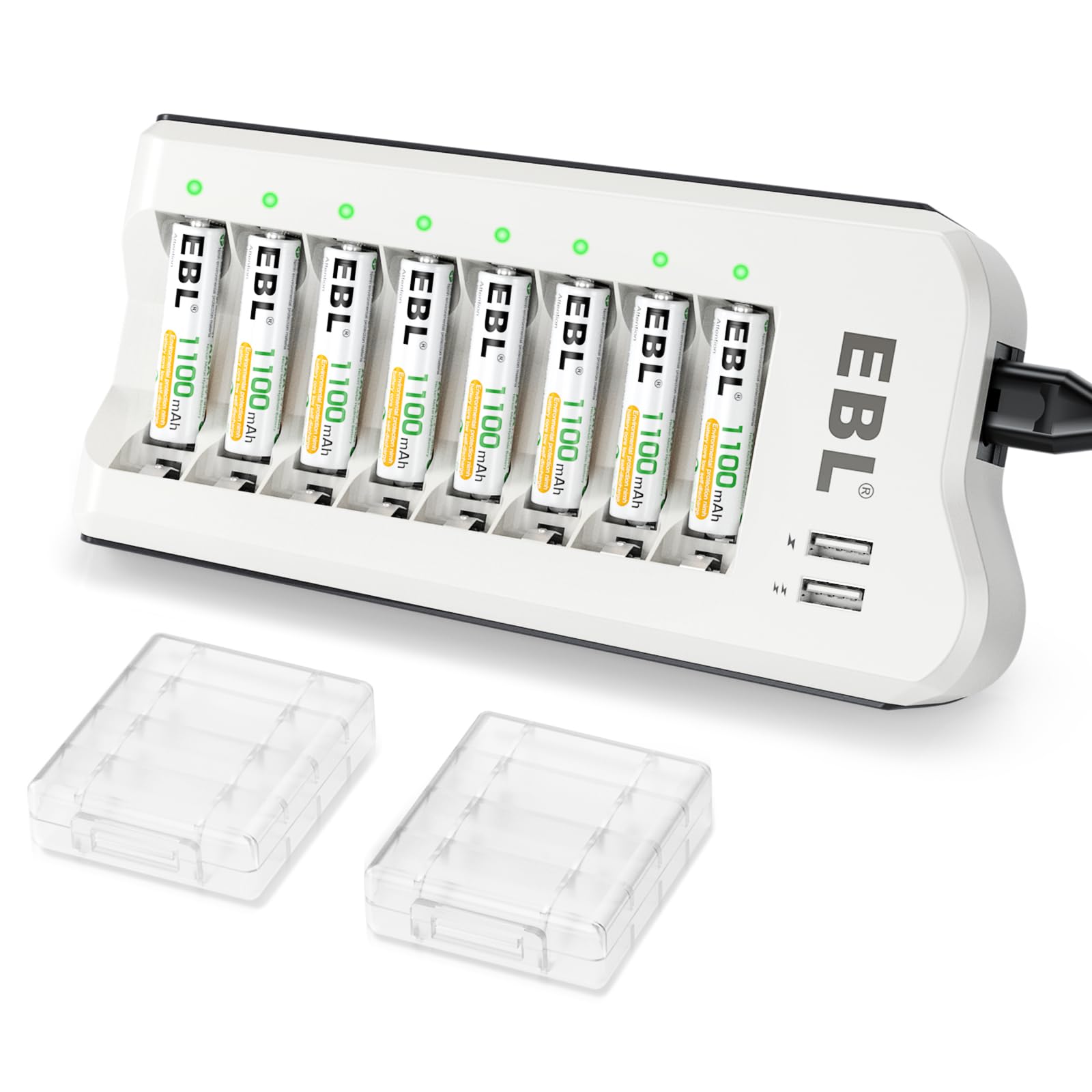 EBL 単4電池 充電器セット 8スロット 独立充電器+単四電池(1100mAh*8)セット 単三単四 ニッケル水素/ニカド充電池に対応可能 単4電池・充電器パック