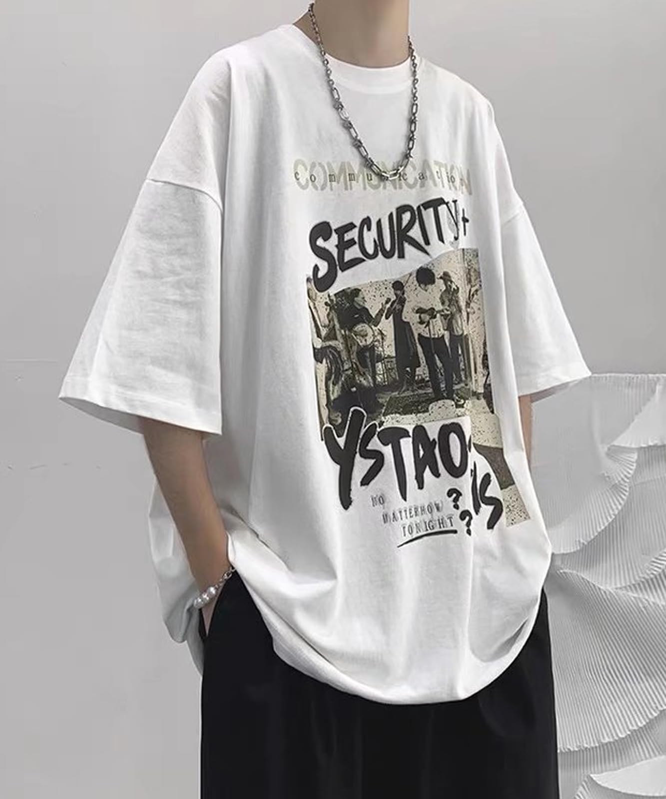 レトロなバンドフォトがプリントされた、スタイリッシュなメンズTシャツが登場しました。オーバーサイズでゆったり着ることができ、こなれ感が簡単に出ます。シンプルながらも存在感あるトップスで、これからの季節のマストアイテムになるでしょう。